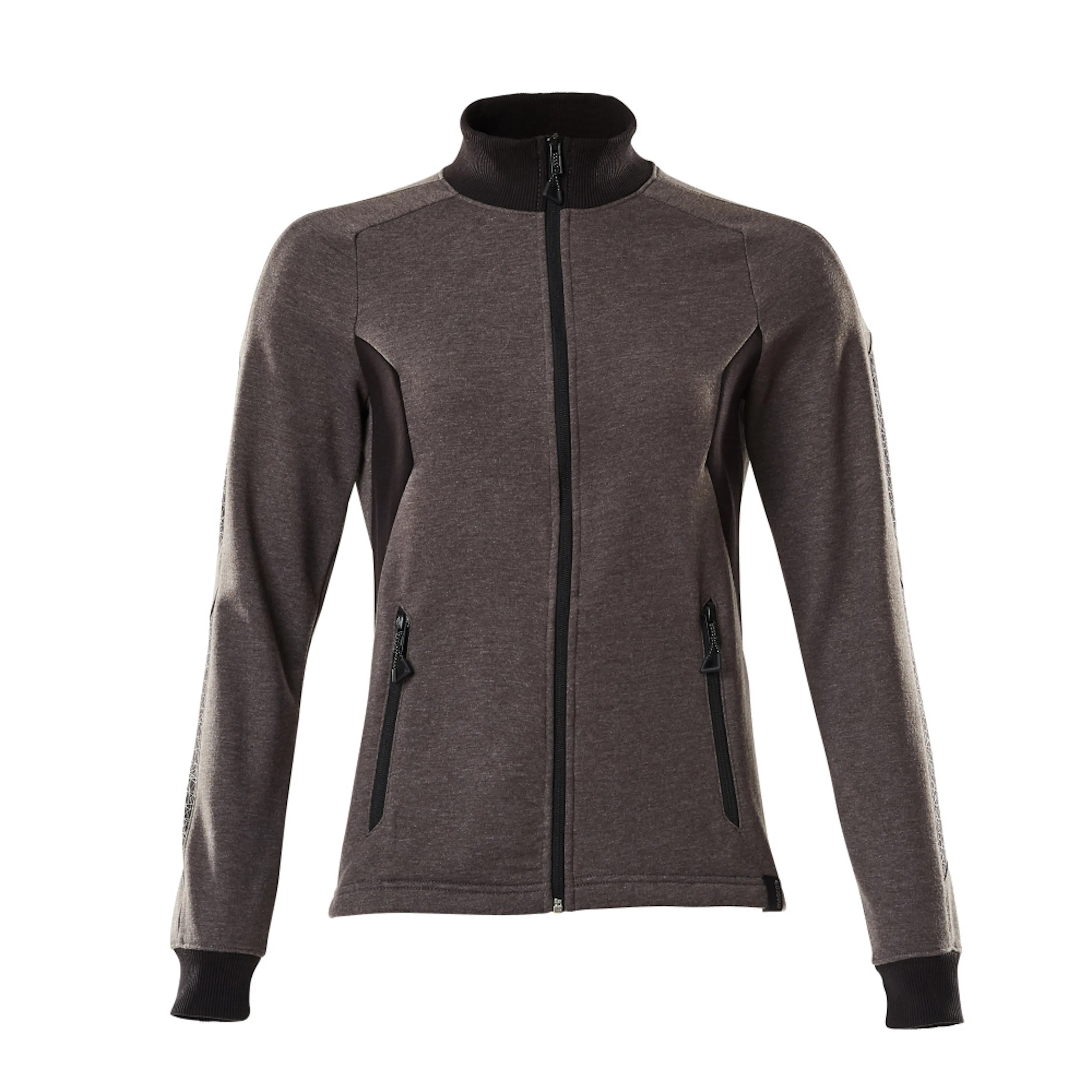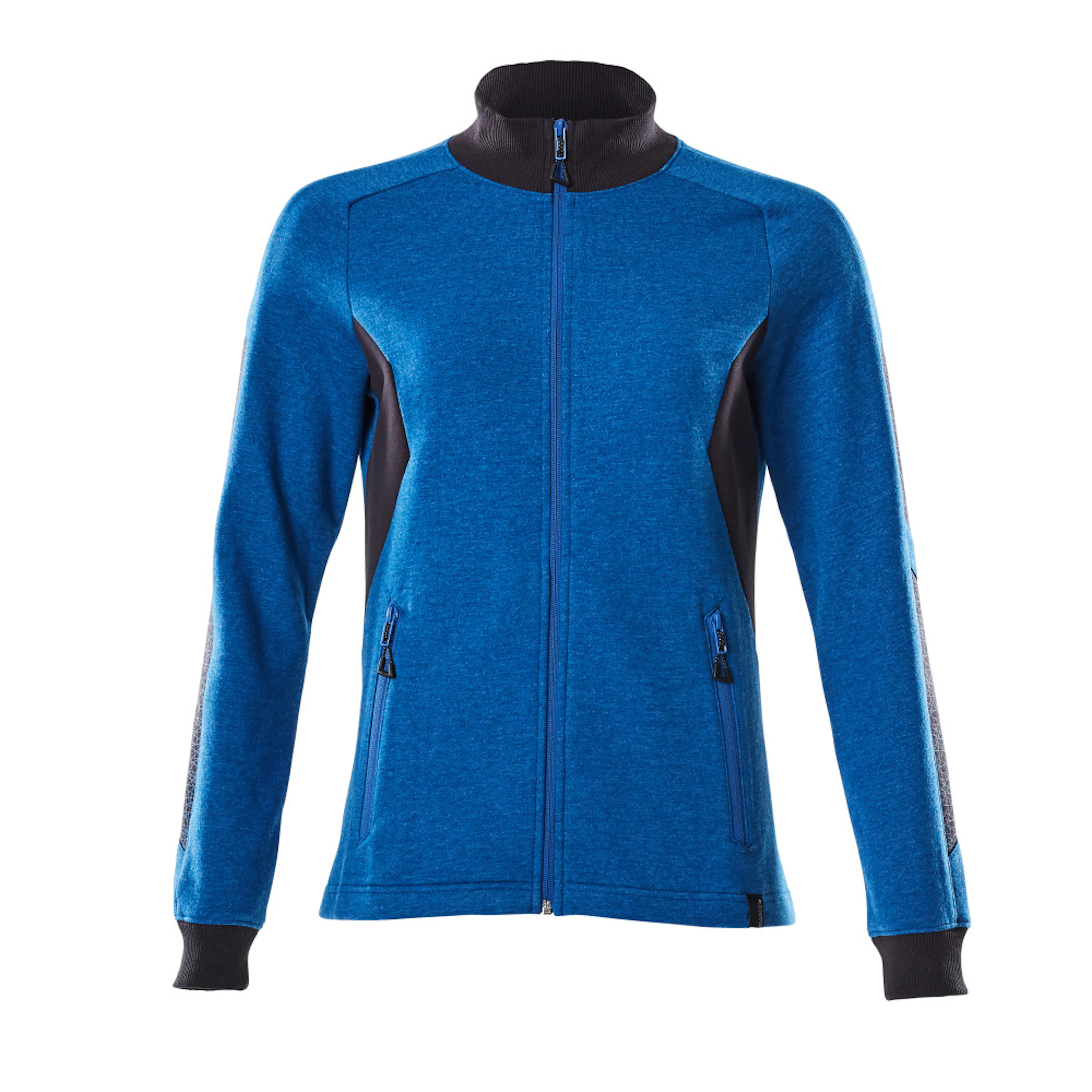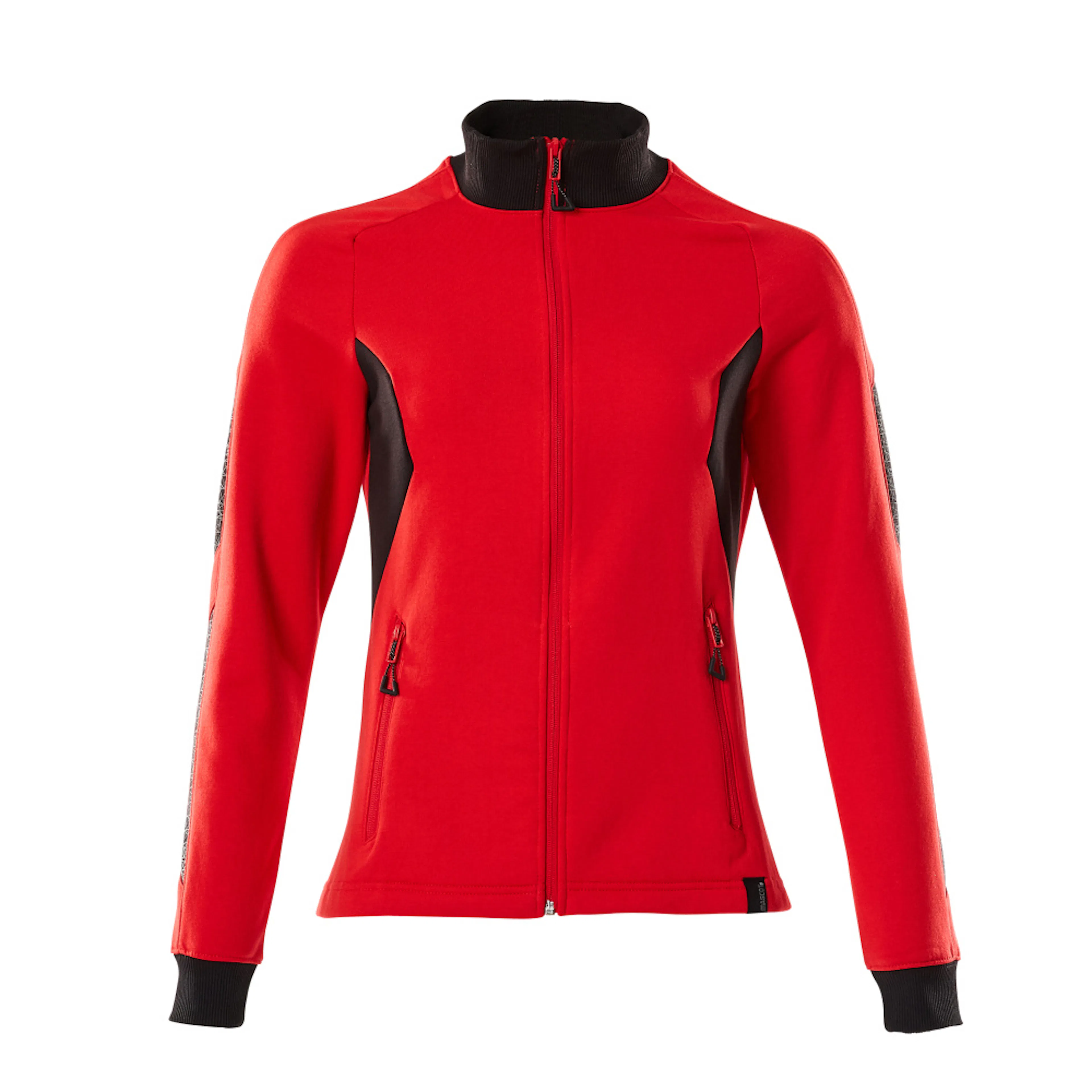Lady passform. Kraftig kvalitet. Borstad insida. Hel blixtlås. Framfickor med blixtlås. Ribbstickning i halsen och vid handlederna. Nackband. Tryck på delar av plagget.