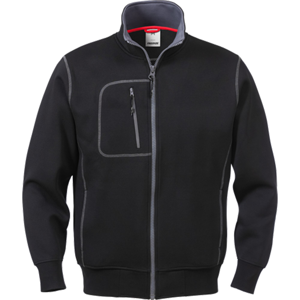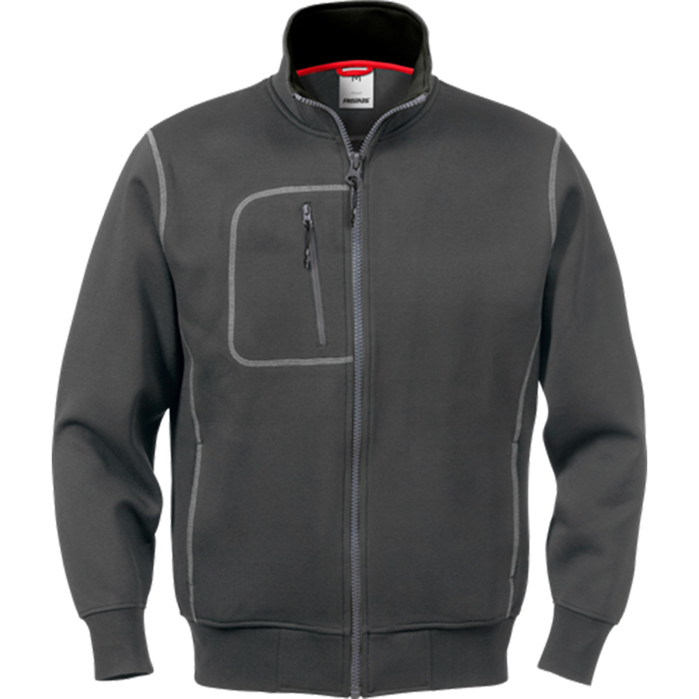 Acode sweatshirt-jacka 1747 DF. Doubleface sweatshirt-material med exklusiv finish – insidan är likadan som utsidan / Lång dragkedja fram / Bröstficka med dragkedja / 2 framfickor / Muddar i ärmslut och nederkant / Flatlockssömmar.