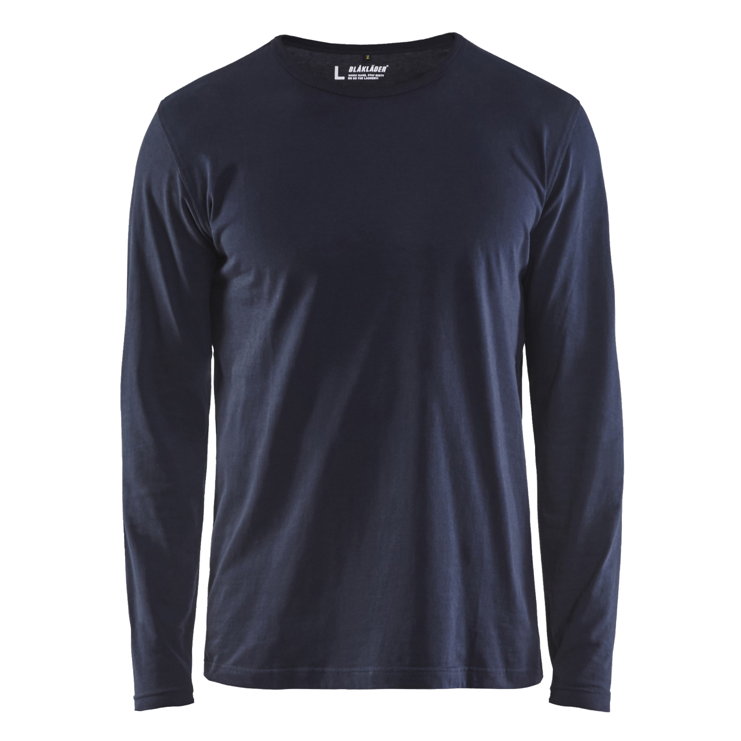 Långärmad t-shirt från Blåkläder i 100% bomull med ribbstickad hals och förstärkt nack- och axelsöm.