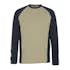 Tvåfärgat. Kammad bomull. Modern passform. Kraftig kvalitet. Förkrympt. Rund hals. Ribbstickning i halsen och vid handlederna. Nackband.