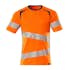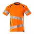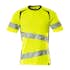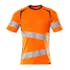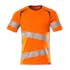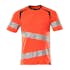 Fluorescerande med sneda tvärgående reflexer. Tvåfärgat. Modern passform. Behaglig bomullsinsida och slitstark polyester med stretch på utsidan. Kvadratiskt jacquardmönster. Reflexen är elastisk. Rund hals. Ribbstickning i halsen. Nackband.