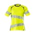 Lady passform. Fluorescerande med sneda tvärgående reflexer. Tvåfärgat. Modern passform. Behaglig bomullsinsida och slitstark polyester med stretch på utsidan. Kvadratiskt jacquardmönster. Reflexen är elastisk. Rund hals. Ribbstickning i halsen. Nackband.