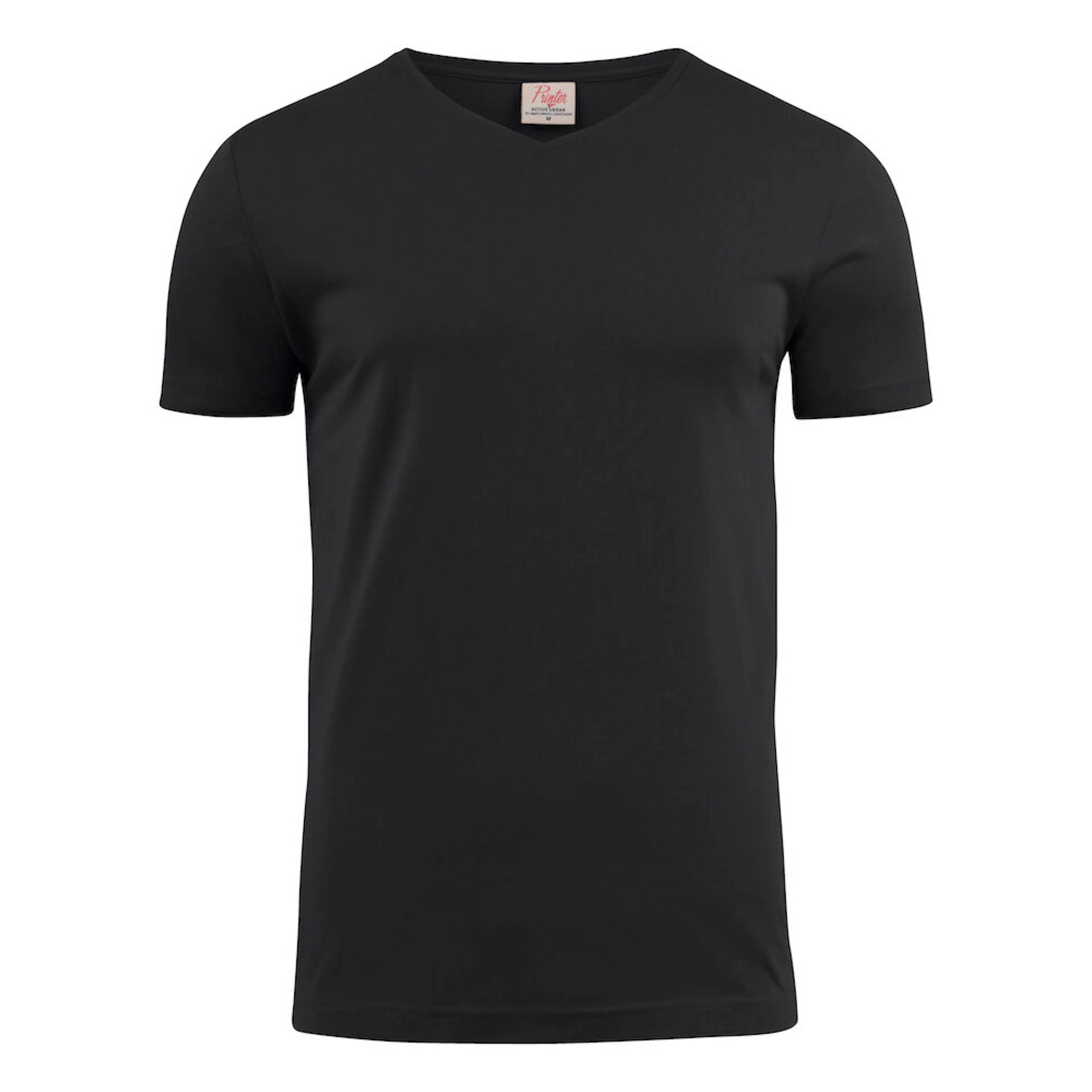 Modern V-ringad T-shirt med förstärkta axelsömmar och nacke. Stretchig 2-lagers ribb i halshål. Oeko-tex certifierad