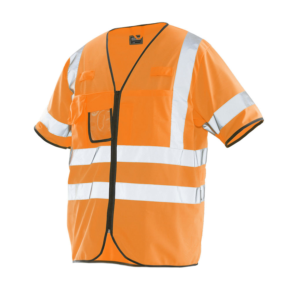 Avancerad varselväst, smidig att bära. Ärmarna har kardborrejustering, vilket gör västen möjlig att bära över jacka. Reglerbar i midja med elastisk resår. Två bröstfickor, stängs med kardborre; den högra med telefonficka och ID-kortsfack, den vänstra med pennfack. På bröstet två hållare för komradio.