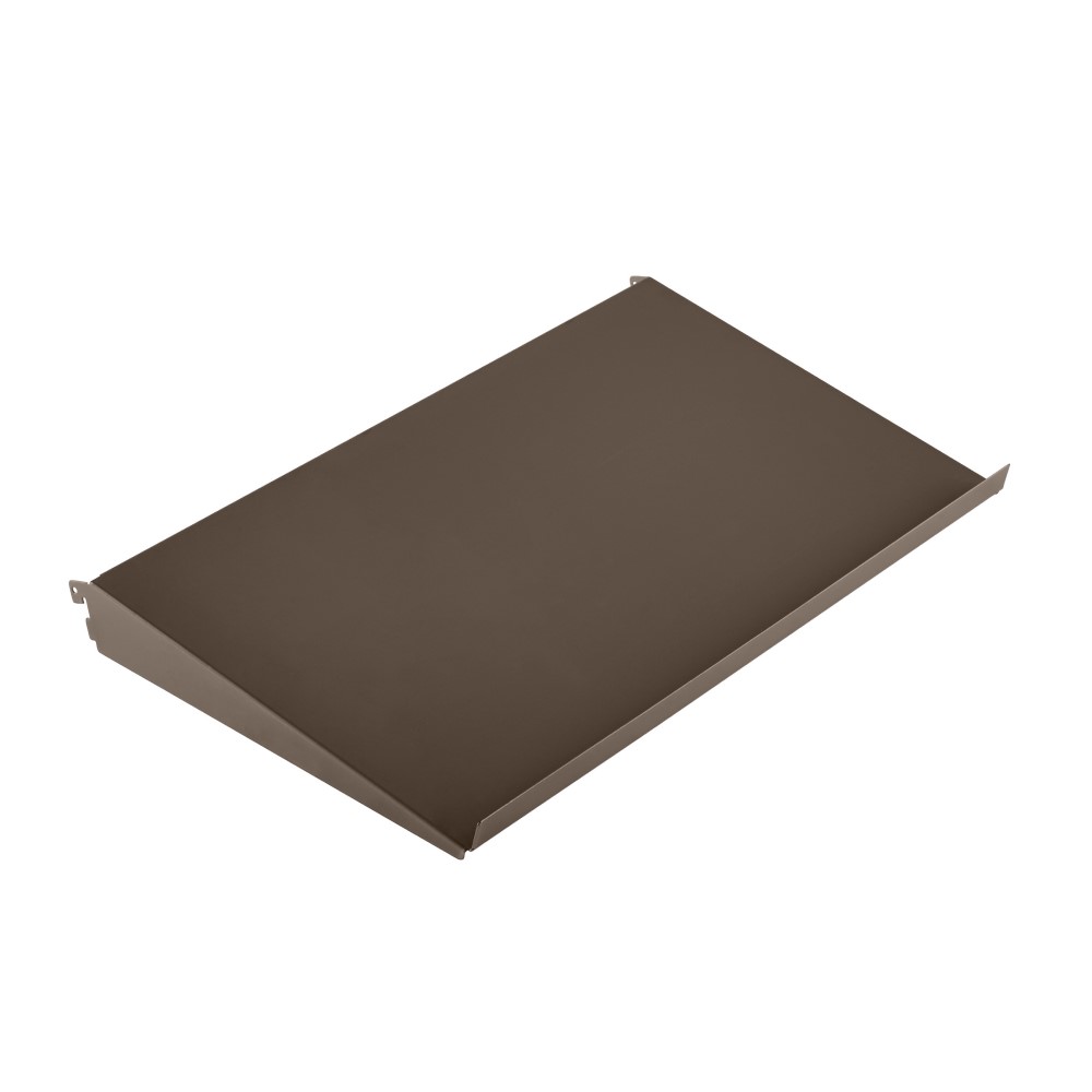 Höj din förvaringslösning med vår lutande hylla metall, ett stiligt tillskott till alla utrymmen. Denna hylla är designad med en sluttande profil, en framkant och integrerade konsoler, vilket gör den till det perfekta valet för att visa skor, böcker, tidningar och mer på ett attraktivt och organiserat sätt. Installeras enkelt mellan två hängskenor. Skapar en estetiskt vacker och samtidigt funktionell förvaring.