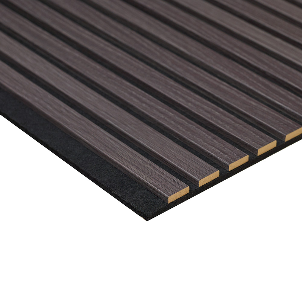 Varje panel består av 13 stycken ribbor med MDF-kärna som har en naturtrogen dekor. Dekoren är synlig på tre sidor med en mjuk kant. Dessutom är akustikpanelerna helt underhållsfria och enkla att montera. Bakom ribborna sitter en 9 mm svart polyesterfilt som är producerad av återvunna PET-flaskor och vi använder enbart trä som kommer från hållbart skogsbruk. Våra akustikpaneler är tillverkade i Småland. Panelen är dessutom brandklassad som D-s1,d2. En av fördelarna med akustikpanelerna är att de har ljudabsorptionsklass A, vilket reducerar efterklang och förbättrar ljudmiljön avsevärt. Panelerna är som mest effektiva på frekvenser mellan 300 Hz och 2000 Hz, vilket täcker ett stort spektrum. Det betyder att panelerna dämpar både höga toner och djupt ljud.