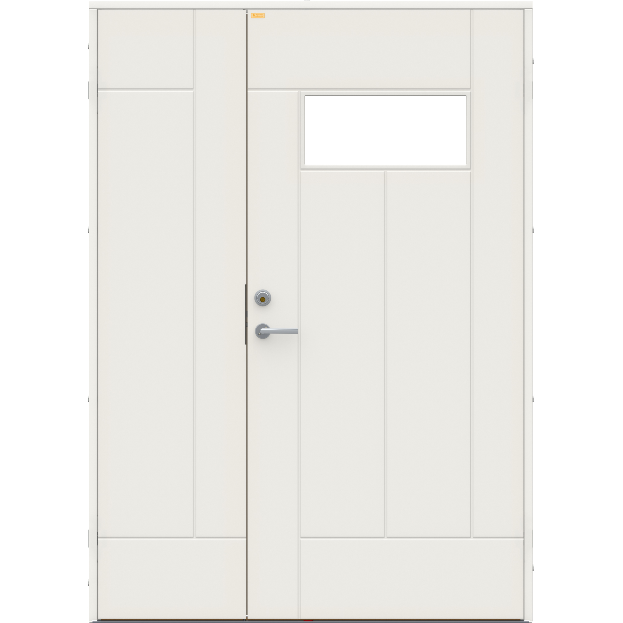 Dörrarna har 105 mm karm och 25 mm tröskel med tätningslist i dörrbladet. Dörrarna levereras alltid komplett med karm och låskista ASSA 2002, men cylinder och trycken ingår inte. Låskistan uppfyller fordringar enligt Svensk Standard SS 3379, av försäkringsbolag godkänd låsenhet.