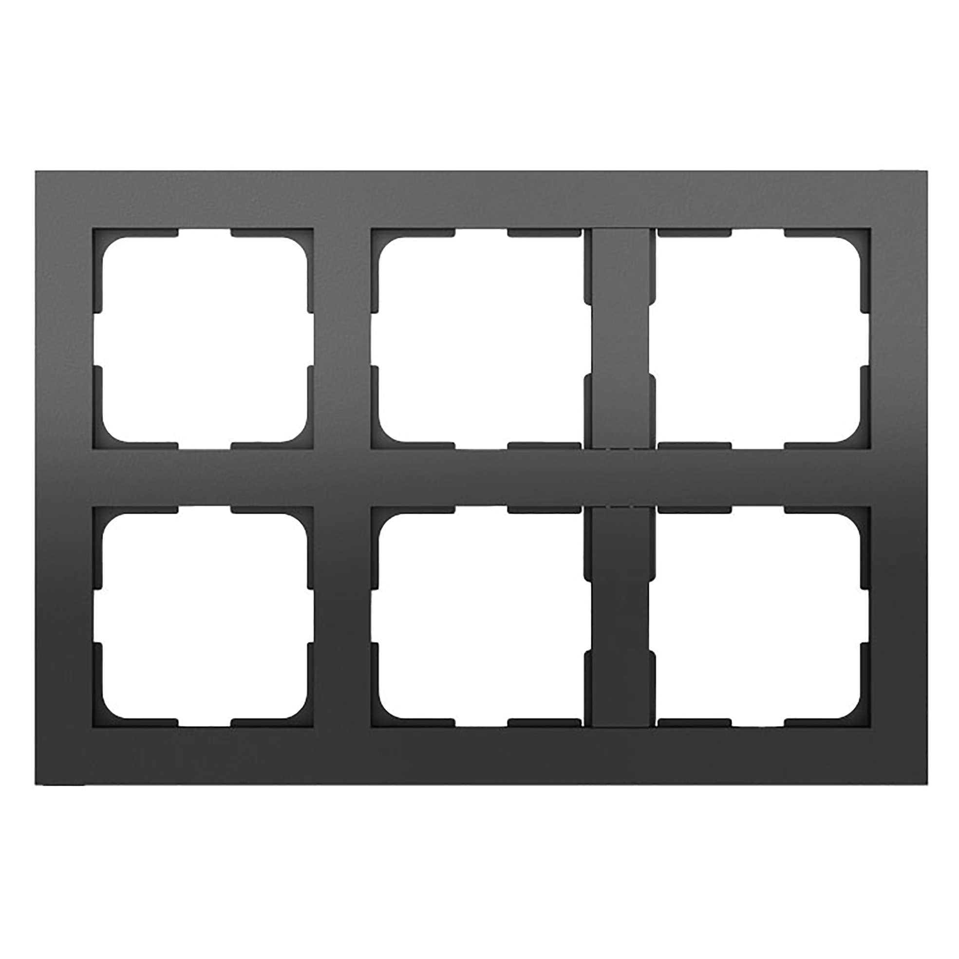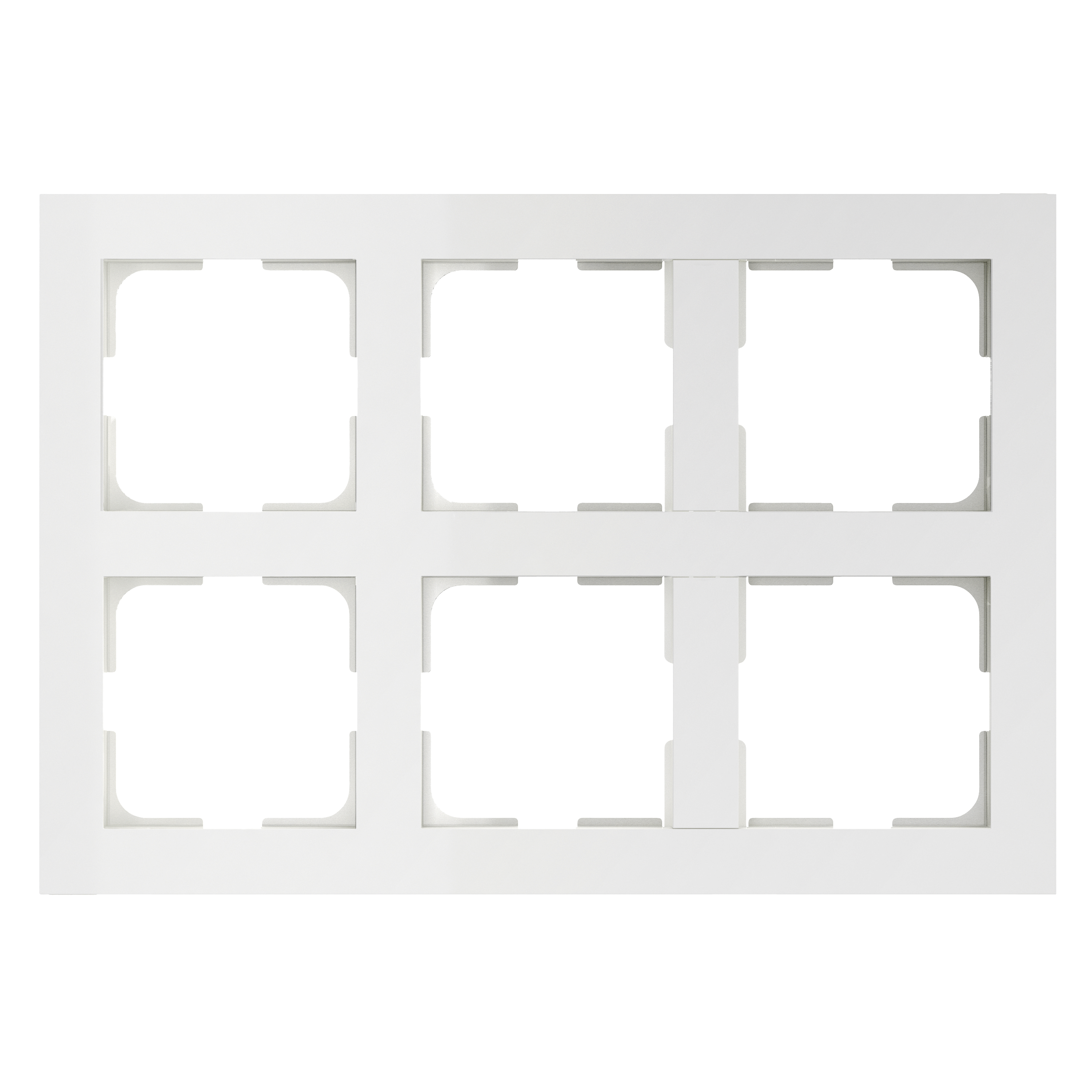 Kombinationsram från Elko med dubbla rader, 2x3 hål, för alla Elko Plus apparater med 56x56 mm centrumplatta. Ribborna mellan hålen är löstagbara, vilket möjliggör montage av 3-vägsuttag. Med ELKOs röda dosor och mellanstycken är det enkelt att montera apparater både horisontellt och vertikalt.