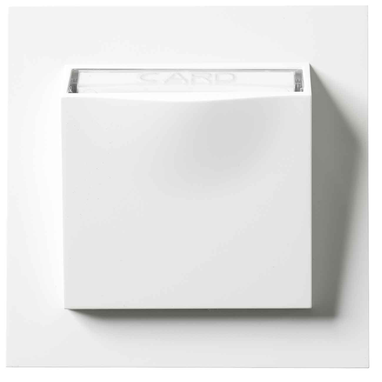 Nyckelkortsbrytare från Elko för infällt montage. Med ram och centrumplatta av halogenfri termoplast. Fästskruvavstånd, 60 mm. Skruvanslutning av ledarna med hissklämma. Avsedd även för kombinationsmontage. Vid utanpåliggande montage användes förhöjningsramar. 1- och 2-polig anslutning är möjlig. Växlande kontakt för indikering. Med blå lysdiodi. Samtliga nyckelkort med max. bredd 54 mm kan användas. Montagedjup 11,5 mm.