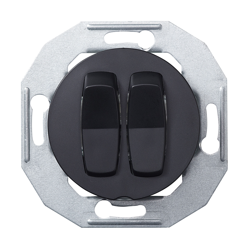 Renova Vippströmställare 16A för infällt IP20-montage i apparatdosa c/c 60 mm eller utvändigt i utanpåliggande dosa 22 mm. Snabbanslutning om ej annat anges. Snäppfastsättning av vippa med fästplatta. Strömställarna har två neutrala överkopplingsklämmor förutom dubbel-trapp (koppling 6+6). Levereras med klor. Kompletteras med valfri Renova-ram.