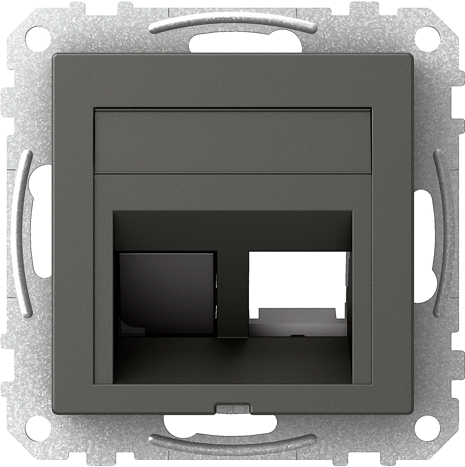 Vinklad centrumplatta från Schneider Electrics för 2xActassi-jack. Montage i apparatdosa cc 60mm alt utanpåliggande i dosa 35mm. Vridbar märkskylt med tre sidor blank, text, färgkodning. Kompletteras med RJ45-jack, Exxact-ram och ev färgkodning.