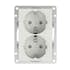 Vägguttag från Elko. Sockel och centrumplatta av halogenfri termoplast. Dubbla anslutningar per fas. Säkerhetsuttag. Fästskruvavstånd, 60 mm. Levereras utan kombinationsram. Lämpliga Option ramar 18 489 66, 76, 86, 96 och 18 490 66. Kräver 1½ dosa.