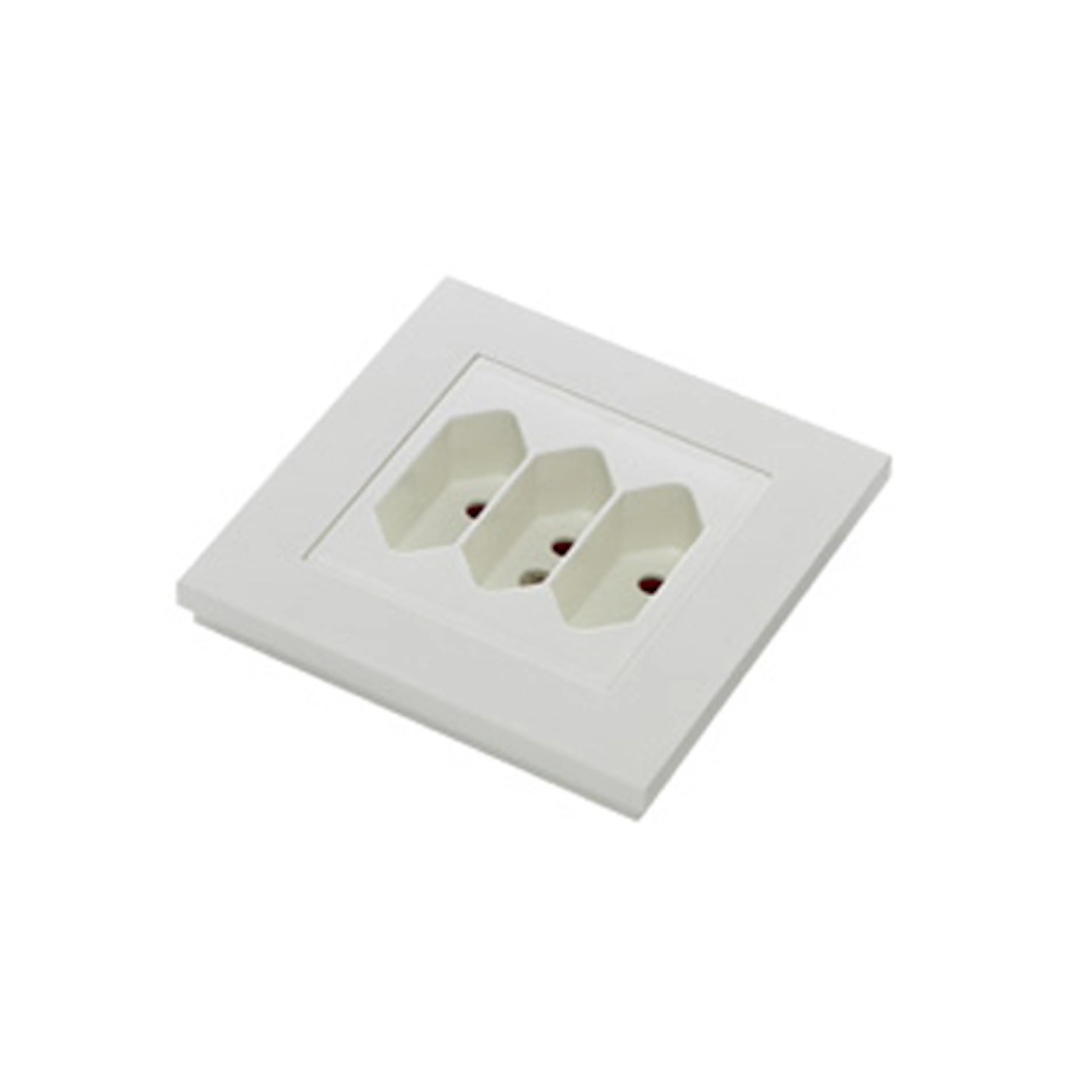 Vägguttag Elko Plus med 3 st Euro stickpropp uttag. Sockel, täckplatta och ram av halogenfri termoplast. Dubbla anslutningar per fas. För flata stickproppar, 2,5 A. Säkerhetsuttag. Fästskruvavstånd, 60 mm. Levereras utan fästklor.