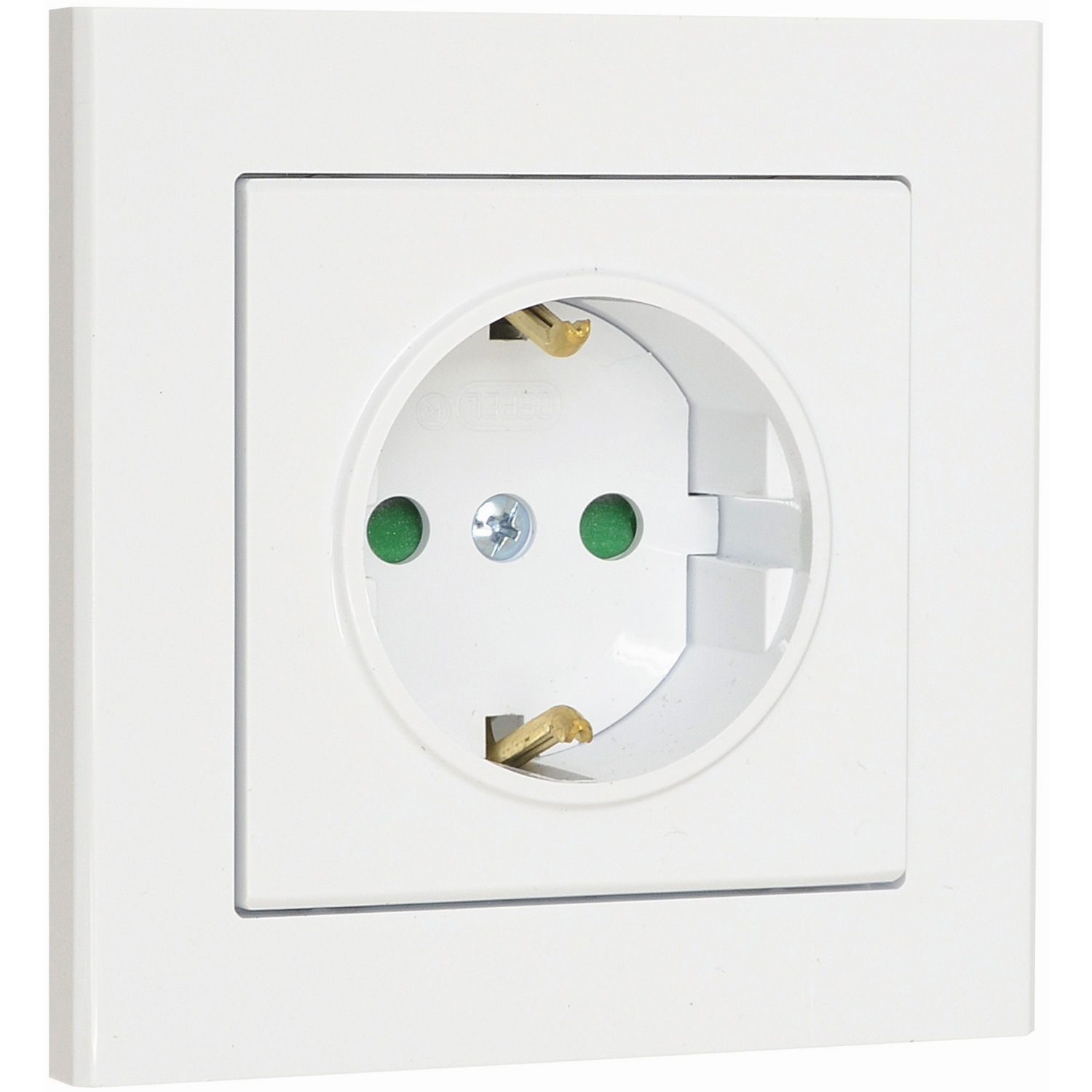 Vägguttag Malmbergs Optima 1-V Mj Skruvlös är ett infällt uttag med skruvlös anslutning. Passar till kombinationsramar.