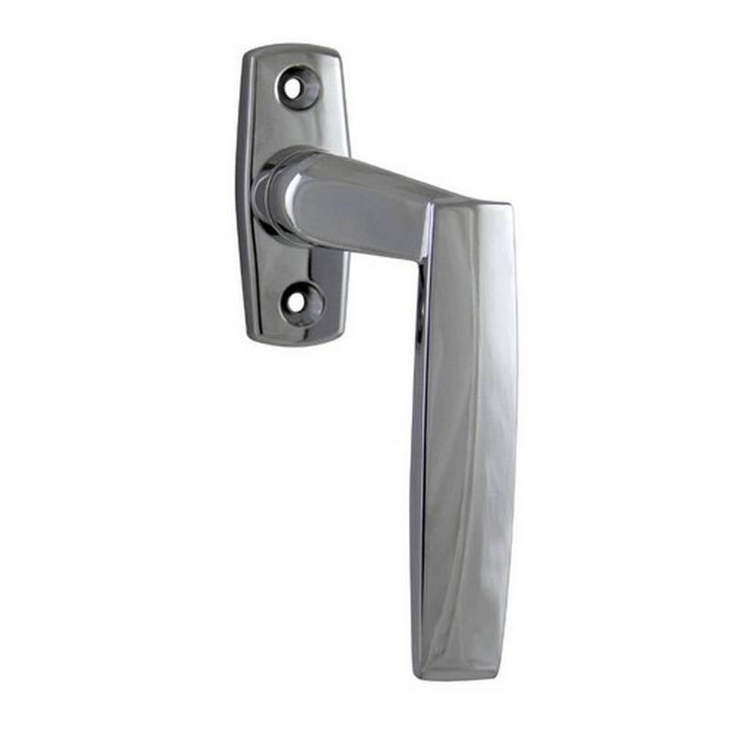 Fönsterhandtag i zink för fönster, altan och balkongdörrar. Finns i vänster, höger samt rakt utförande. Längd handtag 95mm. Mått fäste 23x60mm.