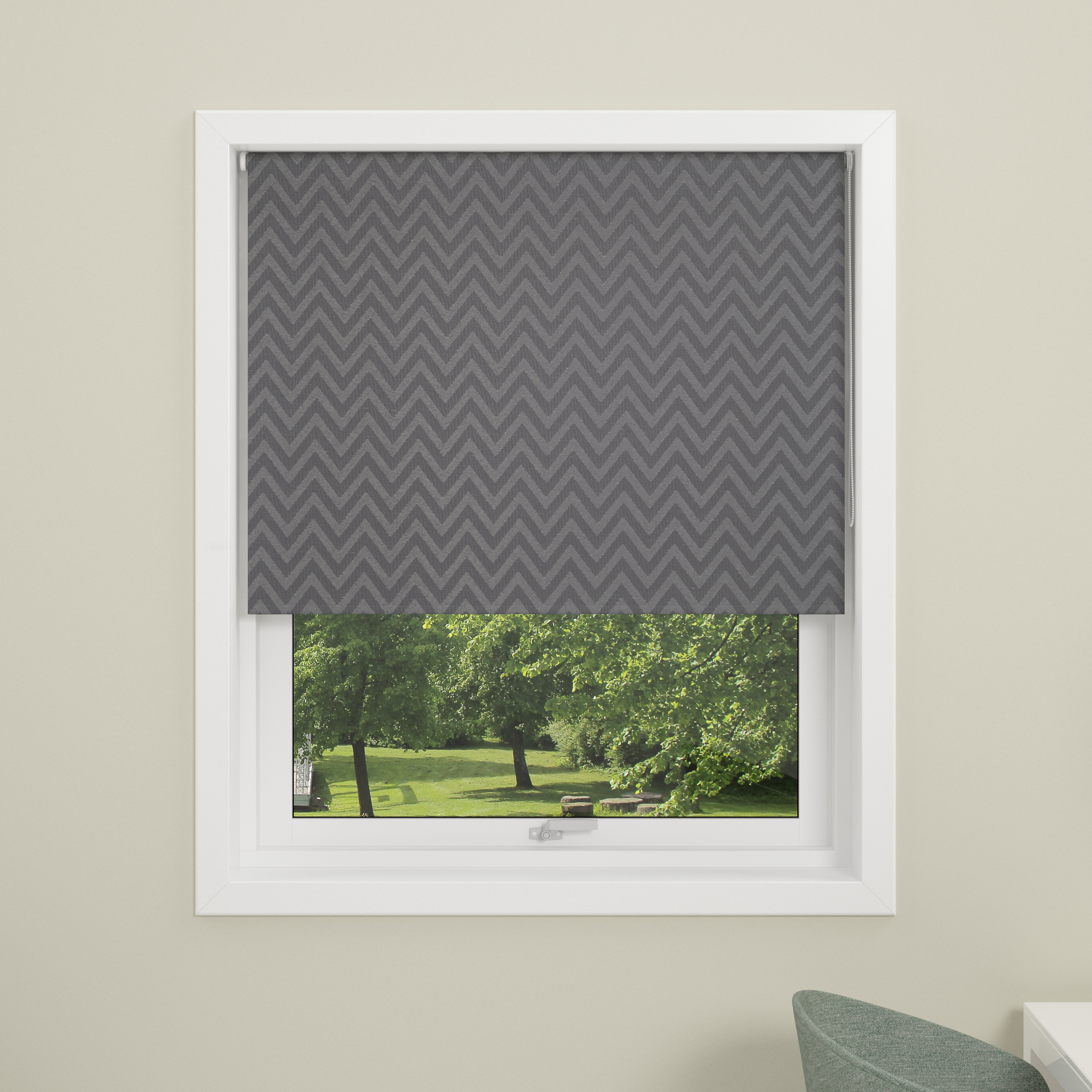 Mörkläggande rullgardin Zig Zag är perfekt när du vill ha helt mörkt, exempelvis i ett sovrum. Rullgardinen manövreras med ett 100 cm vitt kulkedjedrag som placeras i valfri sida. Till sidodraget medföljer ett barnsäkerhetsbeslag som används för att sätta fast kulkedjedraget mot väggen, så det inte hänger löst. Rullgardinen kan monteras både på vägg och i tak. Angivet mått är inklusive beslag, vävens mått är 3,3 cm smalare. Om inte något av måtten passar kan du själv kapa din rullgardin till önskad bredd.