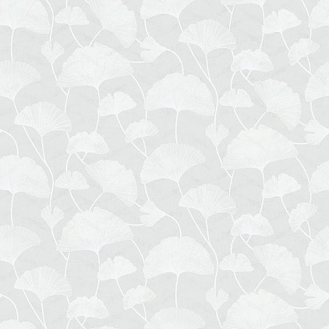 Den vita, mönstrade tapeten Sophia pryds av ginkoträdets vackra bladverk. Ginko, eller tempelträdet som det också kallas, har inspirerat till många vackra tapeter och tyger genom tiderna. Som här; stiliserade plymer av ginko i taktilt relieftryck strävar upp över en botten med ett diskret, böljande mönster som skimrar som pärlemor när ljuset faller på.