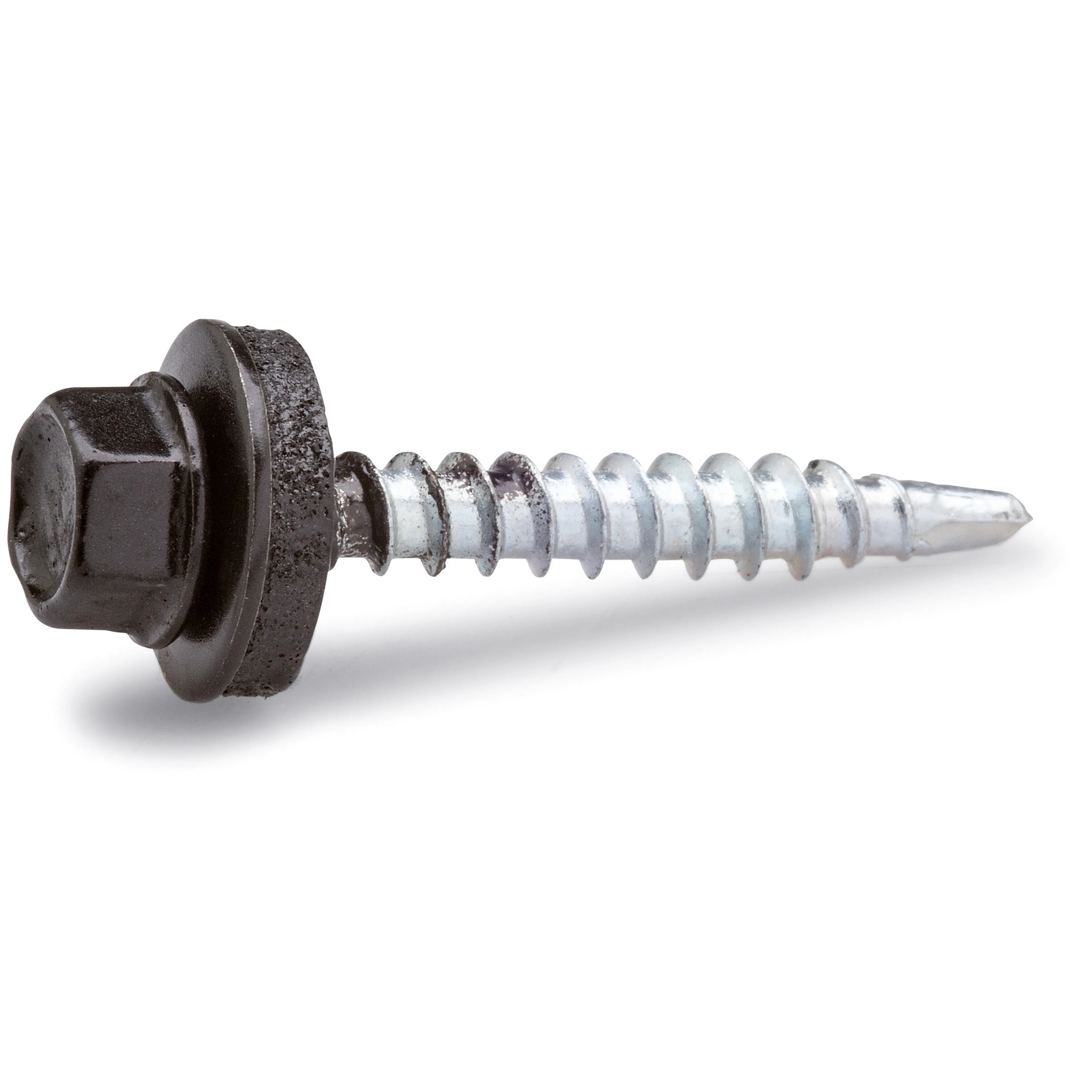 Farmarskruv FAST FZB är en borrande och gängpressande skruv för utvändig infästning av byggplåt, lackerad i samma färg som byggplåten. Sexkantskalle med fläns. Ledad bricka med tätning av EPDM-gummi. För träregel. Ytbehandling: Elförzinkad, lackerad. Burk. Nyckelvidd: 8 mm.