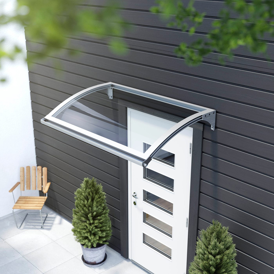 Skydda entrén eller värmepumpen mot regn och rusk med ett snyggt entrétak med LED-funktion. Detta entrétak möjliggör det för dig att bestämma om du vill ha skymningsrelä, rörelsesensor eller manuell på- och avstängning samtidigt som du ger fasaden ett visuellt lyft. Entrétaket består av UV-beständigt aluminiumram i mörkgrått samt rökfärgad polykarbonatskiva och tål snövikt 120kg.