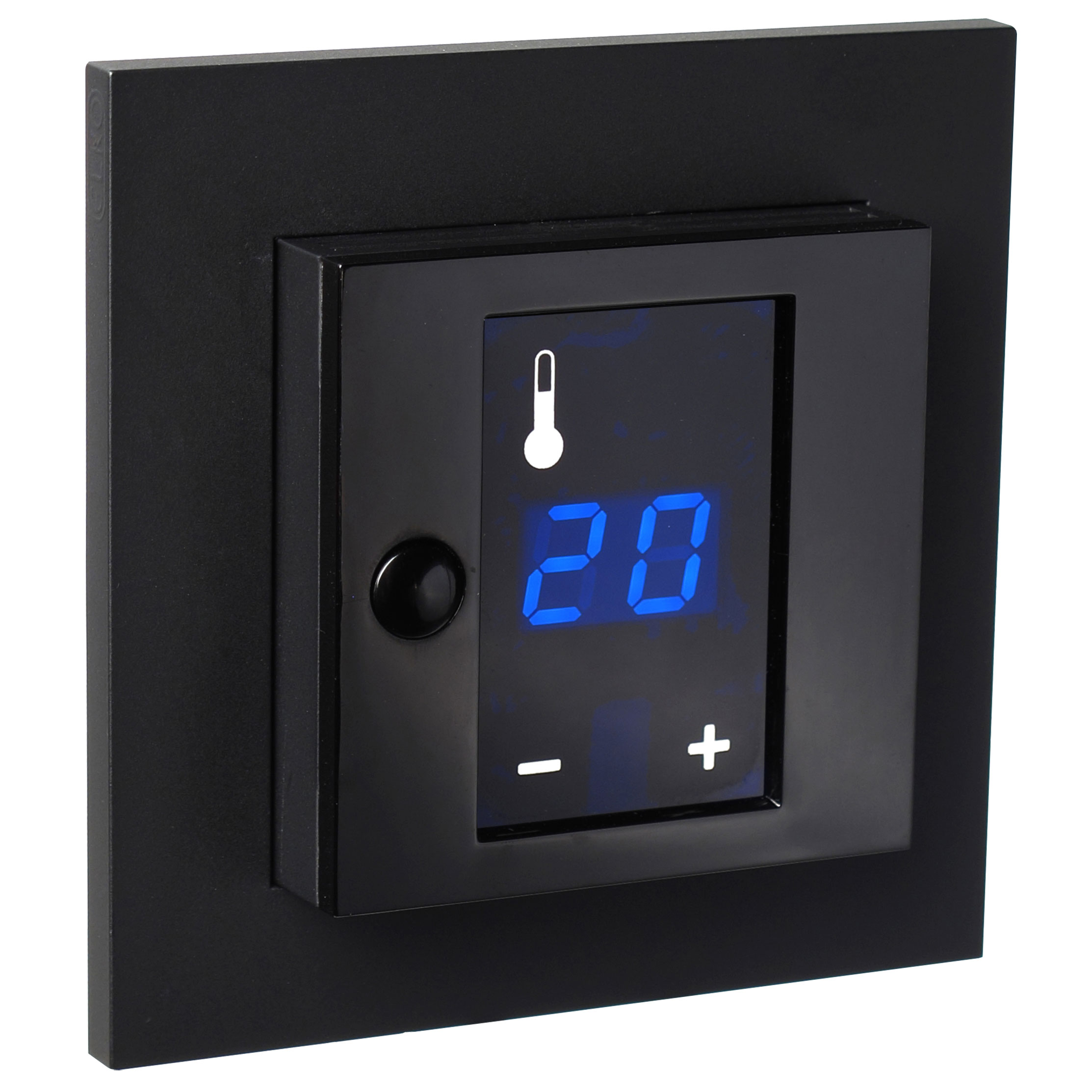 Display termostat Plus, 3600W med touchdisplay. Välj mellan styrning med golvgivare eller rumsgivare. Inbyggd frostsäkring eller begränsning av golvgivare (max 27 grader). Montagedjupet är 25 mm och passar i standard apparatdosa och tillsammans med alla Elko kombinationsramar. Även för utanpåliggande montage med förhöjningsram. Enkel anslutning med separat ingång för styrning av nattsänkning (4°C) och frostsäkring. Termostaten kräver anslutning av både nolla och fas.