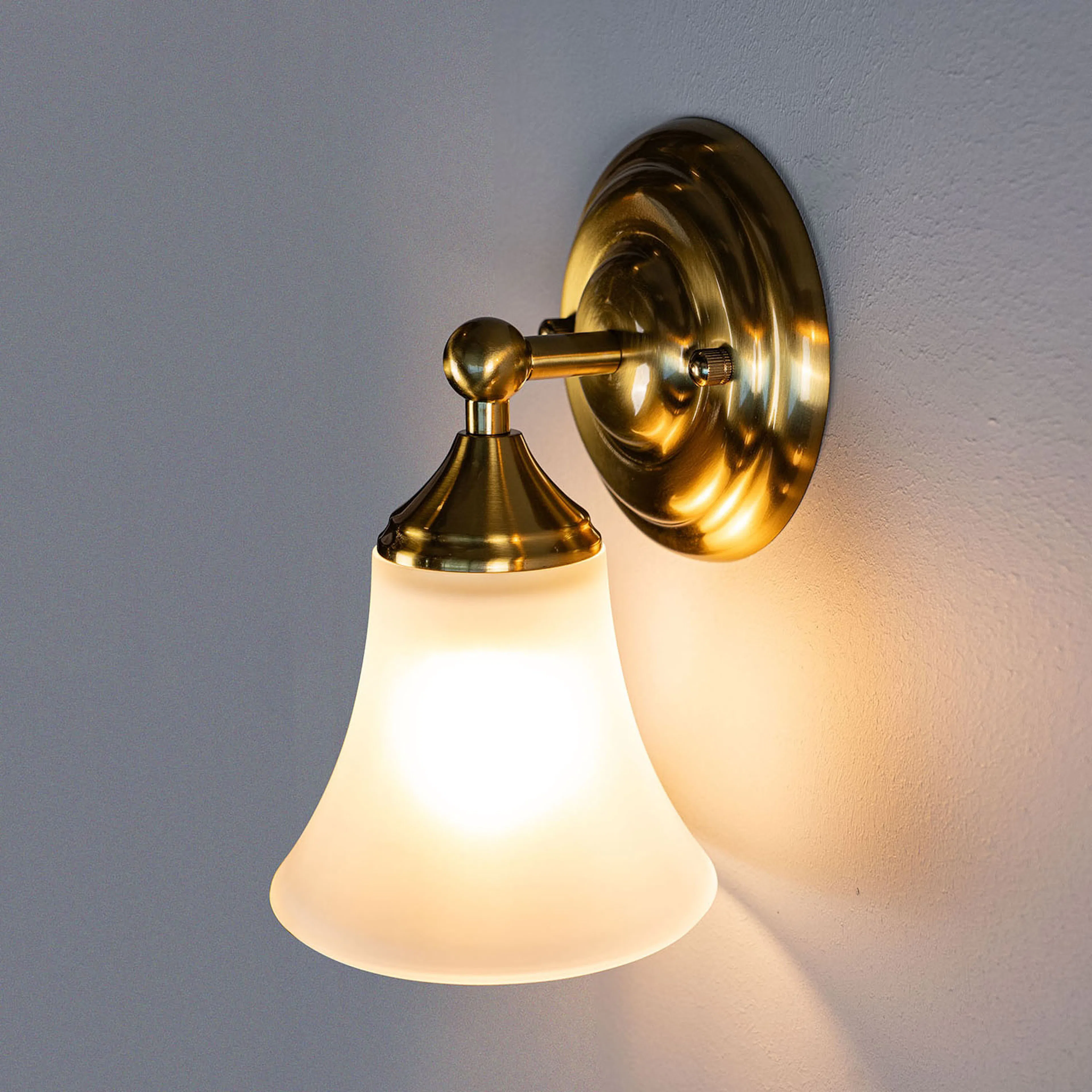 Läckö är en elegant vägglampa med klockformad kupa i opalglas. Armaturens detaljer och rundade väggfäste ger lampan en klassisk karaktär men som samtidigt funkar i de flesta hem. Till vägglampan Läckö behövs en ljuskälla med E27-sockel. Överväg dimbar ljuskälla om du vill kunna anpassa ljuset, smidigt både för funktion och känslan i rummet.