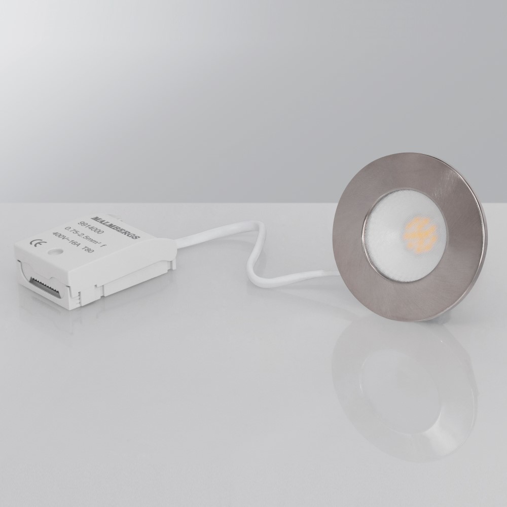 Downlight Malmbergs MD-231 är en downlight där du slipper drivdon för smidigare installation. Denna armatur är anpassad för infällt montage och anslutes till snabbkopplingsplint 4x2,5 mm². Den är vidarekopplingsbar och har dragavlast för kabel eller flexslang 16 mm. Downlighten är dessutom dimbar med bakkantsstyrd transistordimmer (RC). Den är dubbelisolerad och S-märkt. Inbyggnadsdjup: 20 mm (OBS! höjd kopplingsbox 23 mm).