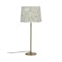 Bordslampa PR Home Base kombinerar en stilren lampfot i metall med lampskärmen Acanthus från Boråstapeter. Den eleganta beige tonen och det klassiska mönstret med blommor och blad gör lampan till ett tidlöst inslag som passar i många olika typer av rum – från vardagsrum till sovrum eller hall.
