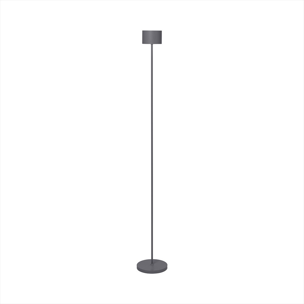 Golvlampa Blomus Farol LED 115 cm passar lika bra inomhus som utomhus. Lampan är vattenresistent och klarar regn. Lampan drivs av ett batteri som laddas med USB-kabel. Ett rött och grönt ljus indikerar när lampan behöver laddas. Lampan tänds genom att röra centrum av lampskärmen och ljuset justeras på samma sätt. Lampan har tre ljusnivåer och är dimbar. Lyser ca 8-40 h, beroende på laddningsnivå.