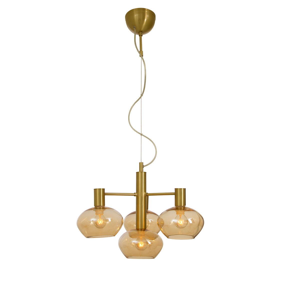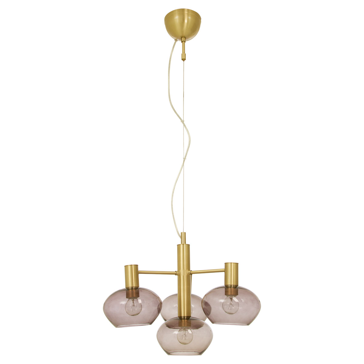 Taklampa Aneta Bell taklampa med 4:a armar och glasskärmar. Takkopp för krokupphäng med kopplingsplint. Max 4x30W E14, ingår ej. Lampan kan justeras till önskad höjd.