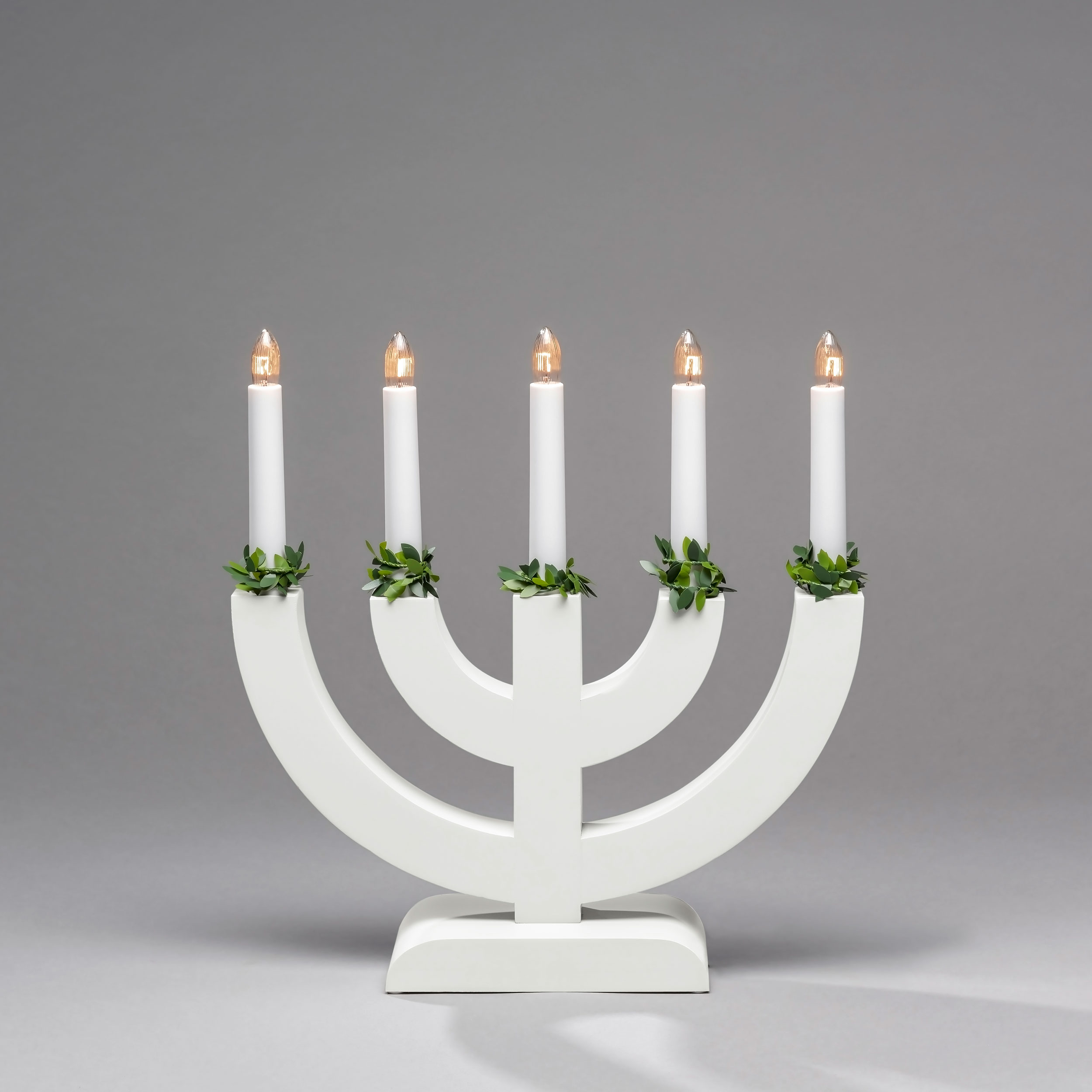Ljusstake från Gnosjö Konstsmide med 5 st ljuskällor och gröna dekorationer.