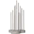 Stilren ljusstake med kraftig träbas, ljuspipor av tunna metallrör. 12st ljuskällor, E5 lampor. Hela ljusstaken i vit färg. Textilkabel i vitt/grå. Ger ett härligt stämningsfullt ljus hela året runt.
