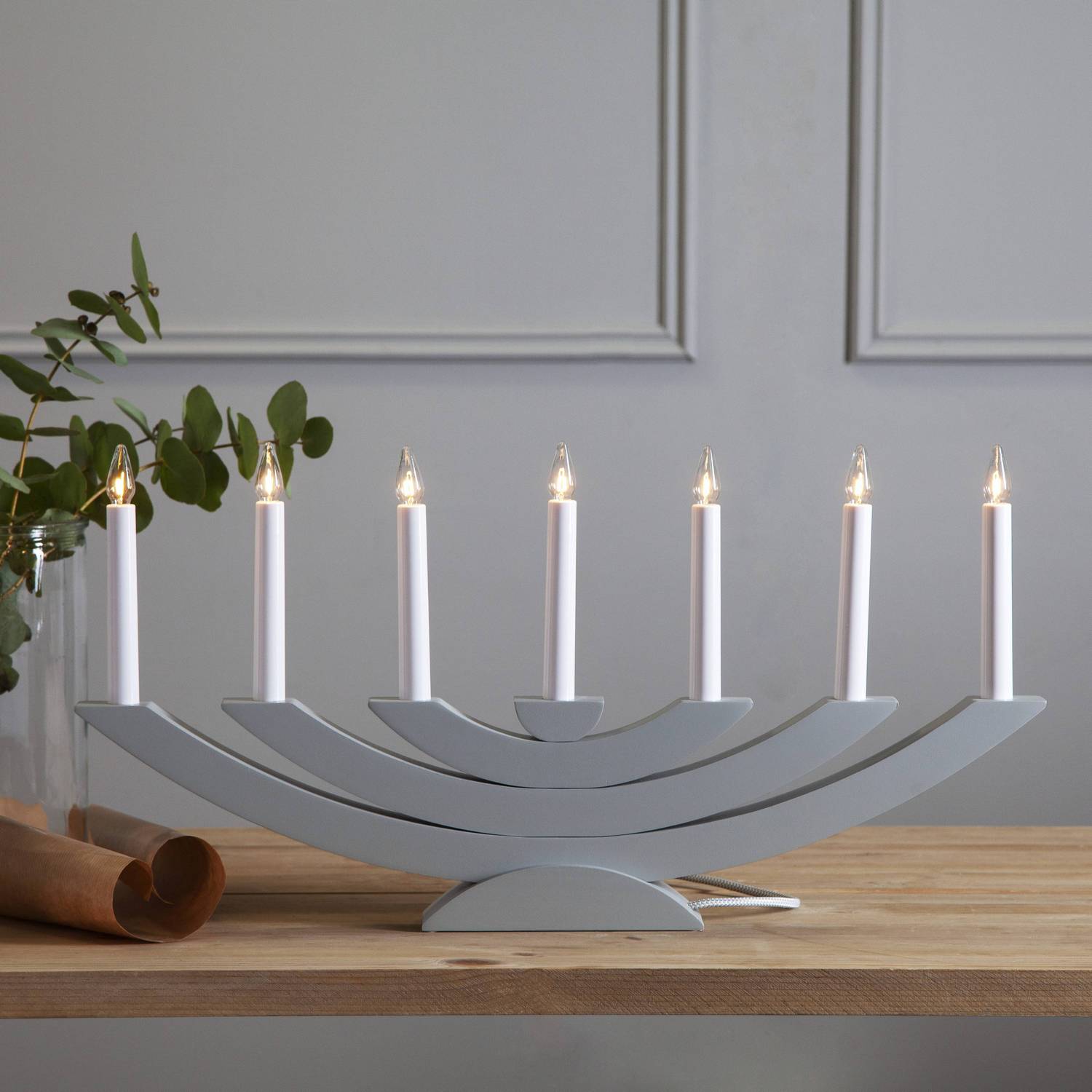 En elegant träljusstake i vit färg, adventsljusstaken har textilkabel. Placera i ett fönster eller på en skänk. Skapar en härlig julstämning i både hem och offentlig miljö.