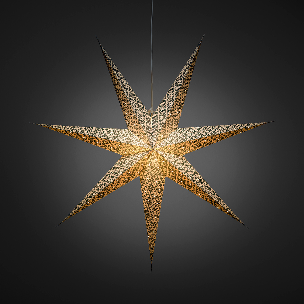 Hängande pappersstjärna från Gnosjö Konstsmide, mått 78x78cm. Inklusive sladdställ och 5 m anslutningssladd.