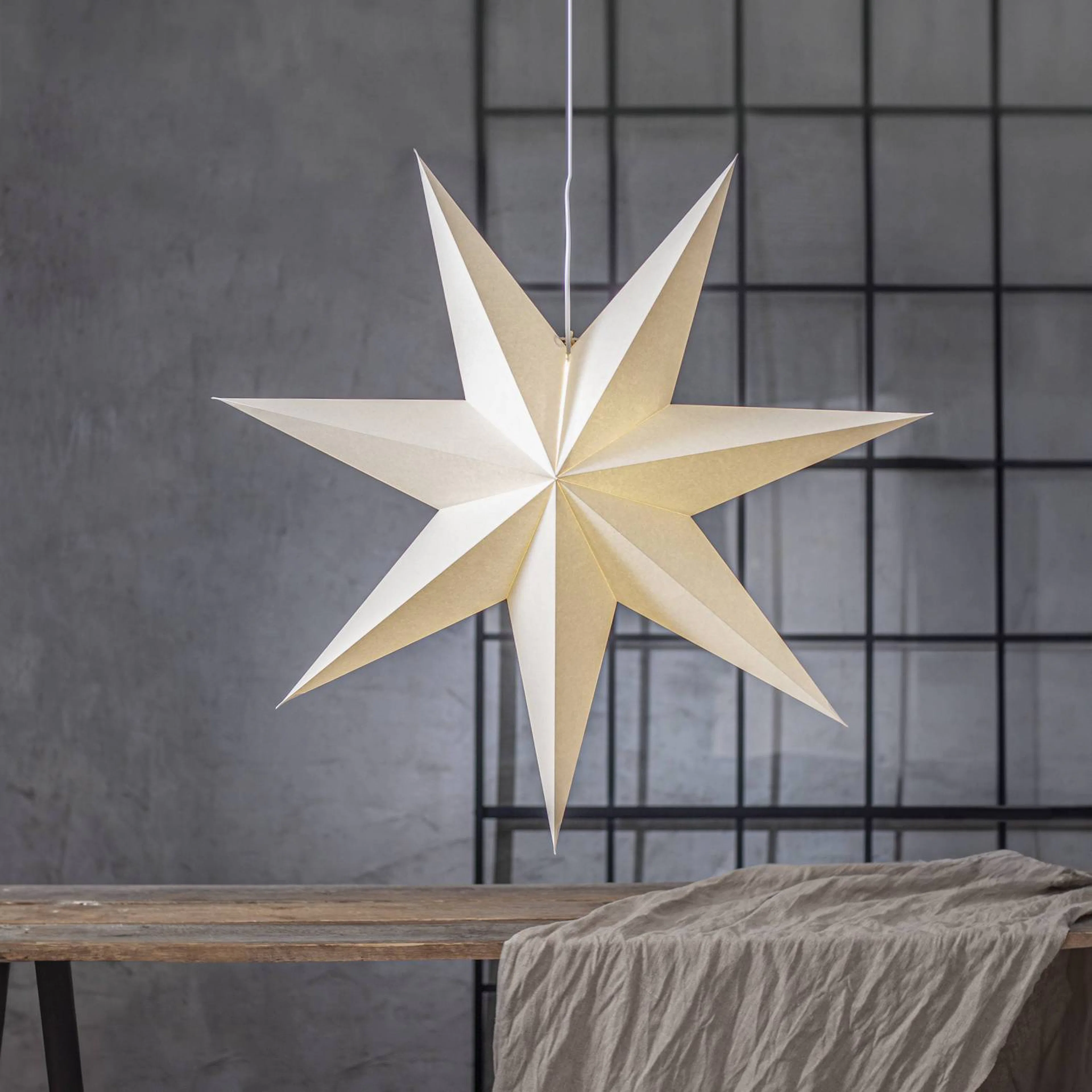 Stor, beige och enkel adventsstjärna gjord av papper. Ger ett stilrent och modernt intryck, häng upp eller luta mot en vägg för att skapa den perfekta julstämningen. Denna produkt har FSC®-märkning.