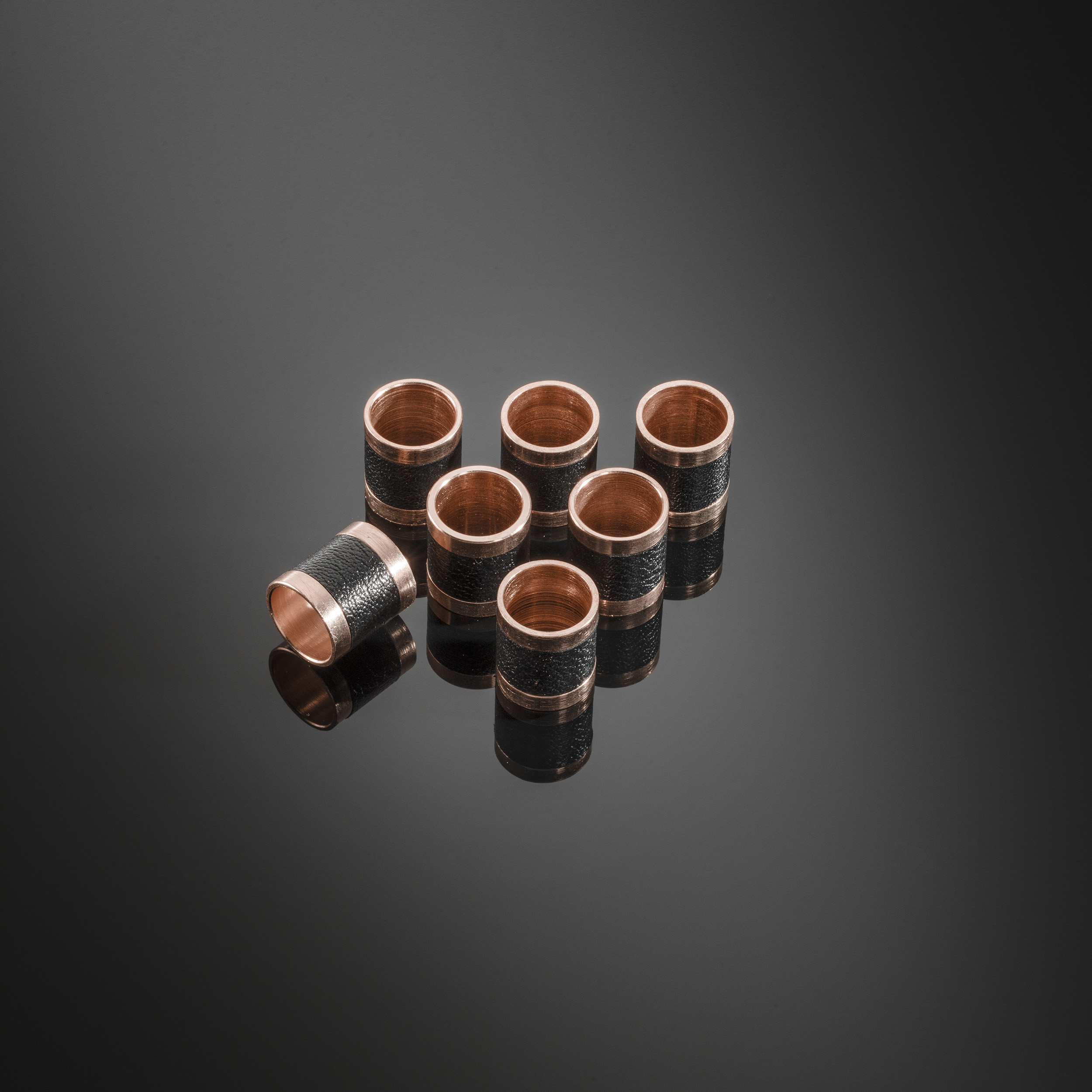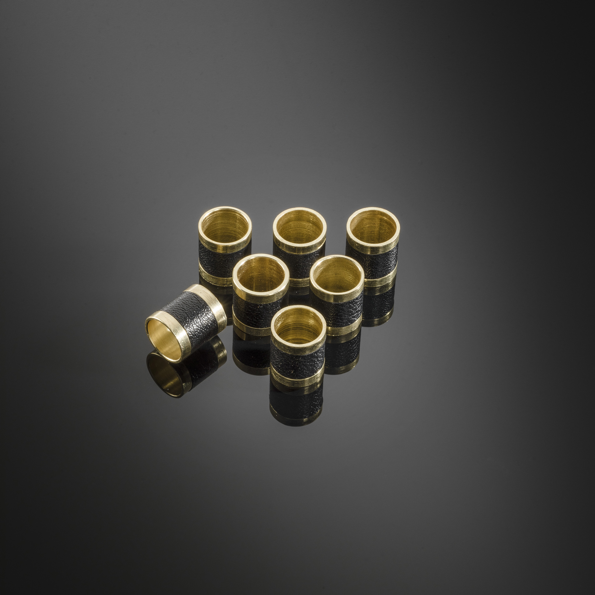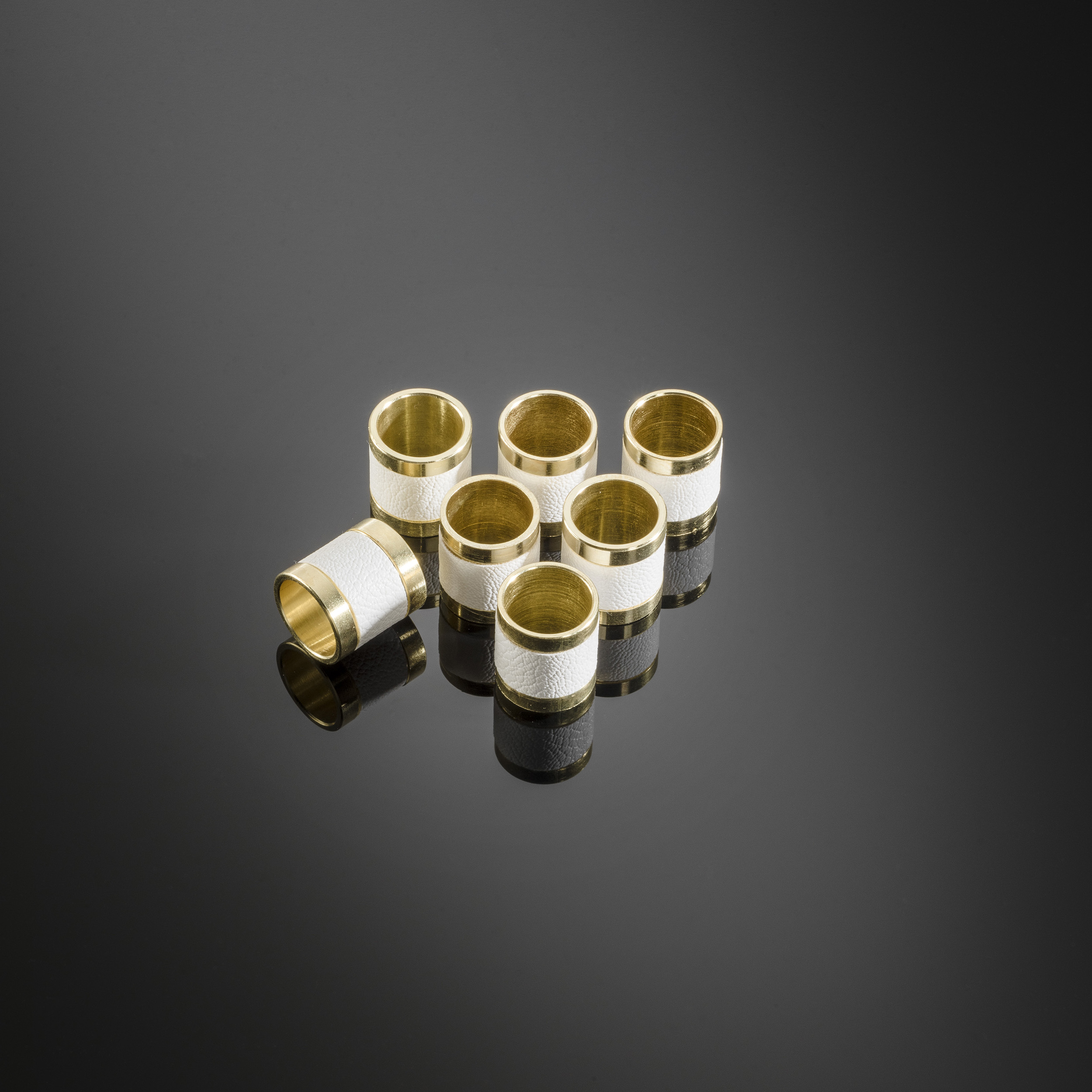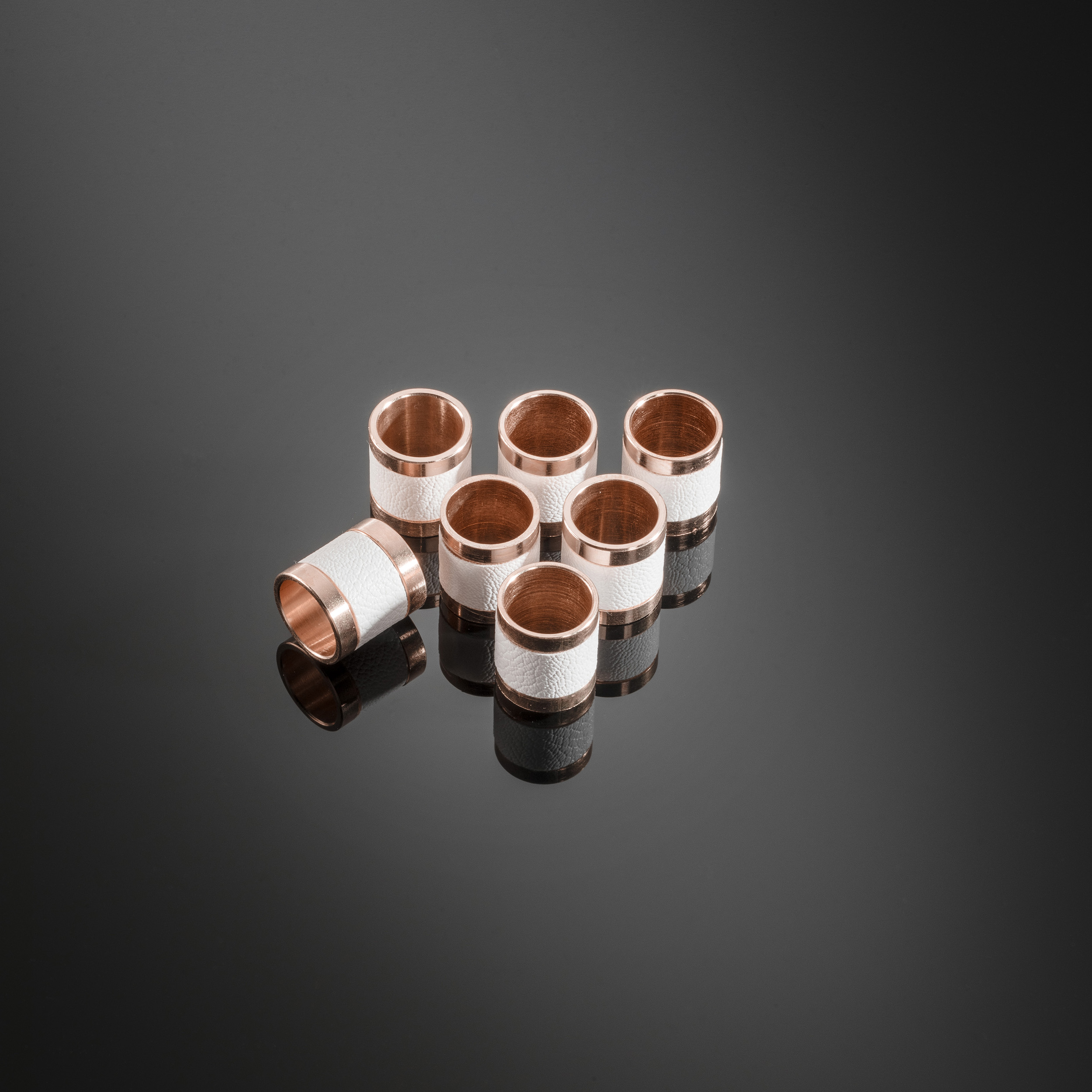 Sju st dekorationshylsor från Gnosjö Konstsmide med läderdetalj.