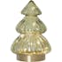 Snygg bordsdekoration i form av en gran i transparent grönt glas. Guldfärgad bas som gömmer batteriboxen. Drivs av 3 st AAA batterier. Perfekt till dekoration på julbordet. Ger ett hemtrevligt sken i hemmet.