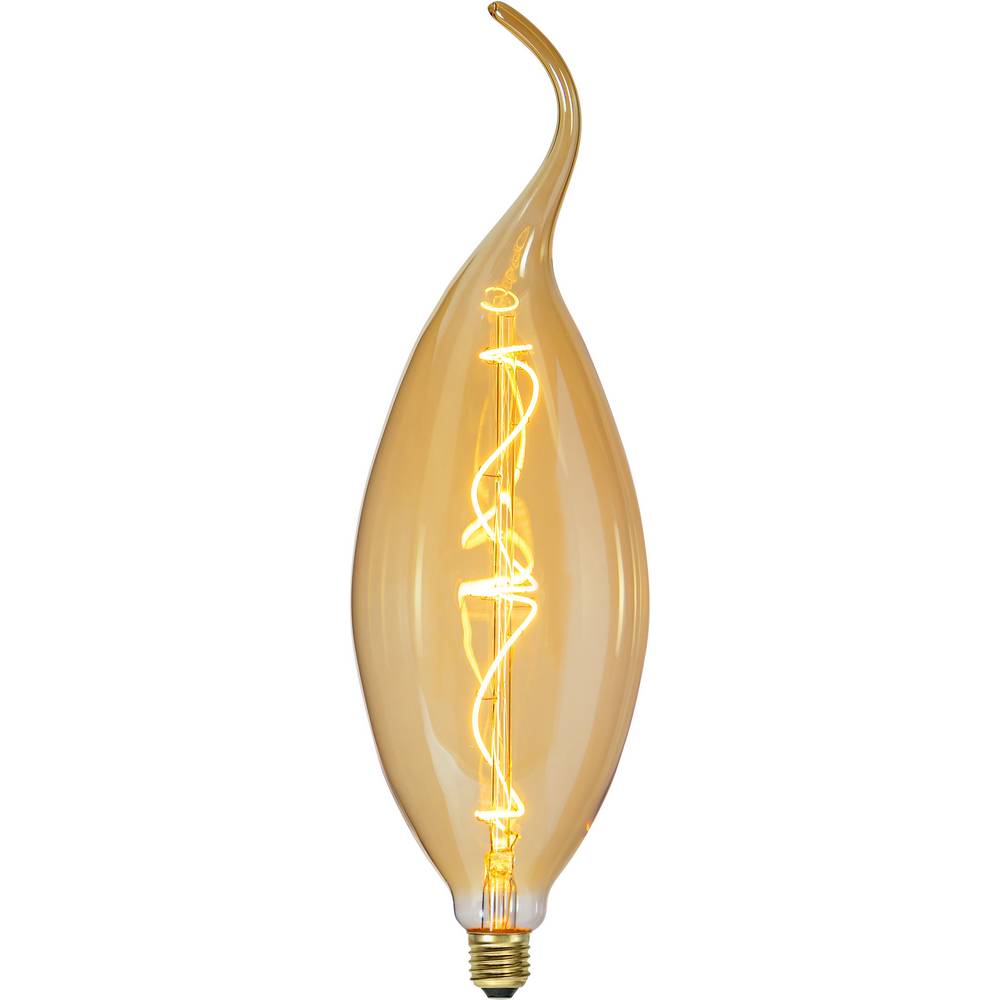Färgat glas med vacker form som lyser med varmvitt sken. Lampan är dimmerkompatibel och har E27-sockel.