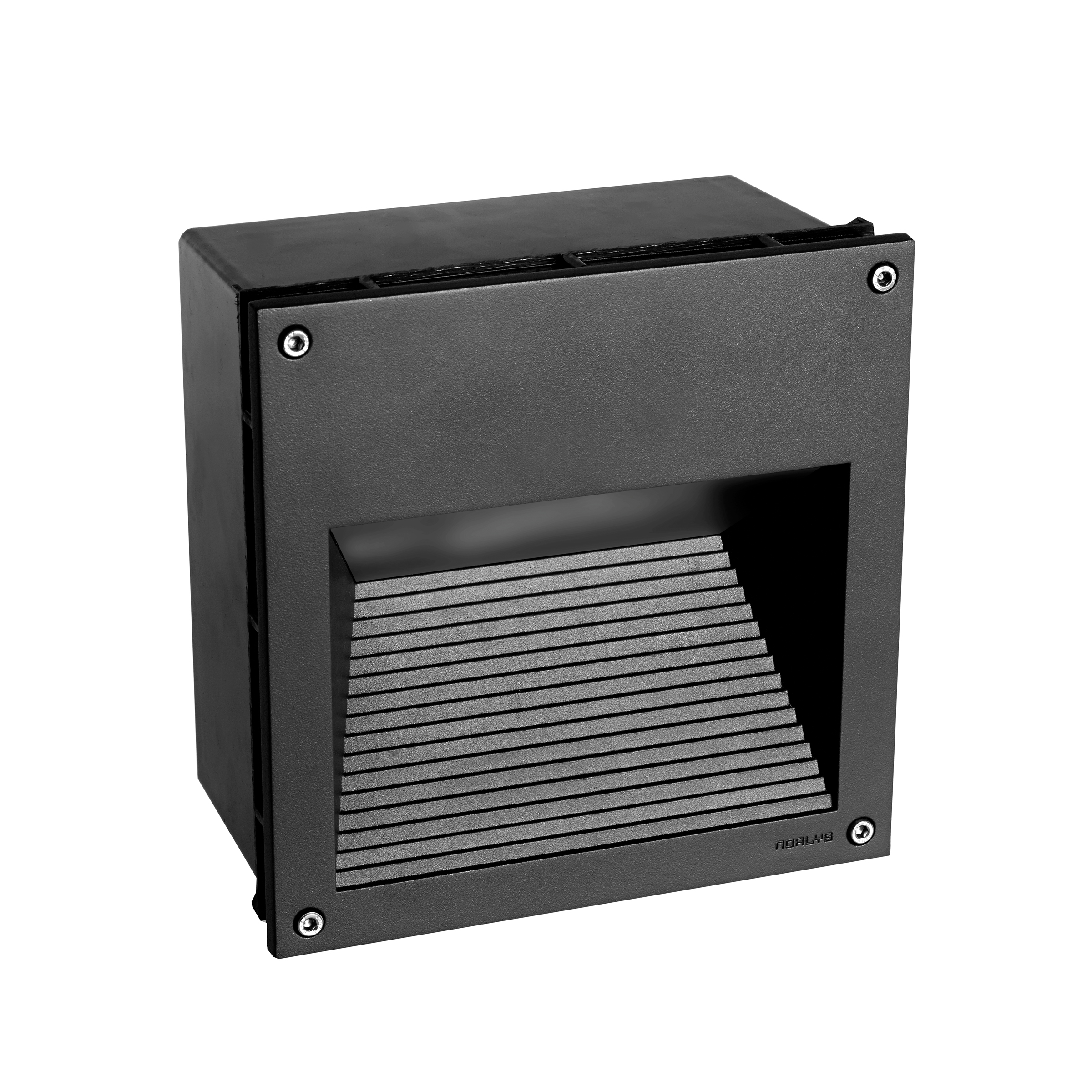 Infälld armatur i gjuten aluminium. Infällningsbox i polypropylen medföljer. Frostad ljusutsläpp
