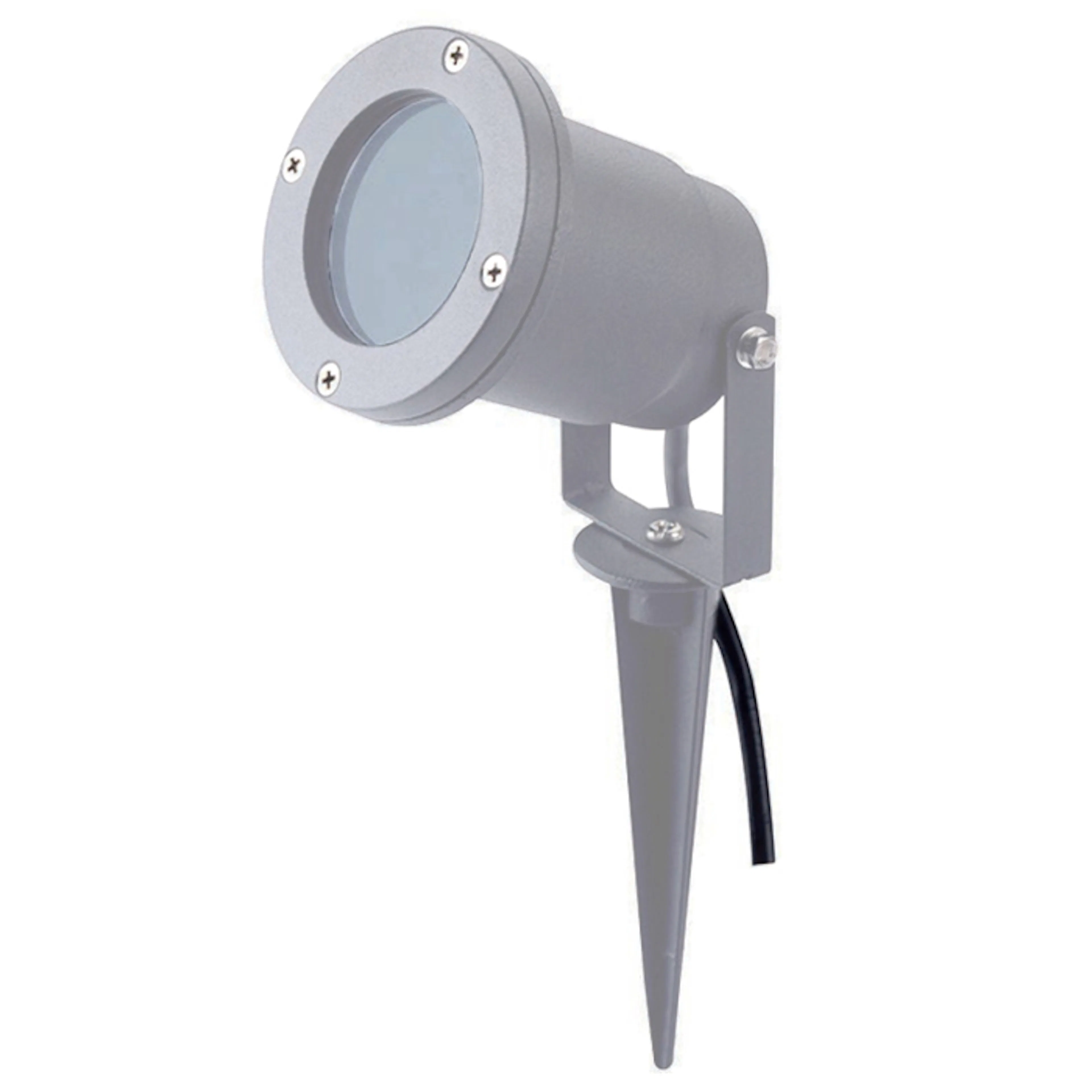 Markspettsarmatur med armaturhus i formgjuten aluminium. Ställbar och avger sitt ljus framåt. Bestyckad med en GU10-sockel (IP54). Anpassad för trädgårdar och landskap för t.ex. belysning av buskar eller rabatter. Levereras med 2 meter kabel (3x1.0 kv).