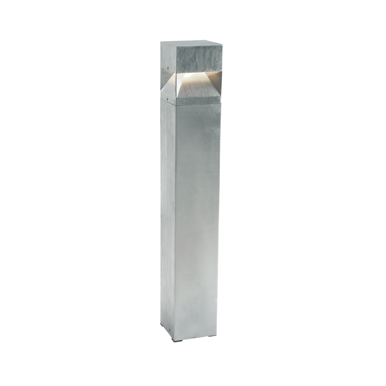 En kraftig pollare i galvaniserad eller svartlackerad stål. Fyra ljusöppningar. Finns både med eller utan lucka med uttag. Två olika alternativ för fästanordningar finns som tillbehör.