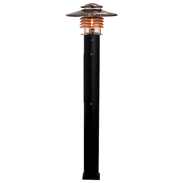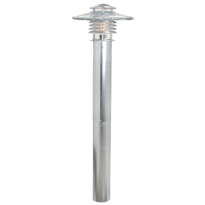 Pollararmatur med rotationsymmetrisk ljusbild. Armaturen har E27-lamphållare som är godkänd för max 75W. Pollaren har kopplingslucka och är anpassad för direktmontage i betongfundament 108/700. Avsedd för utomhusbruk (IP44) och passar för bruk både i privat och offentlig miljö.