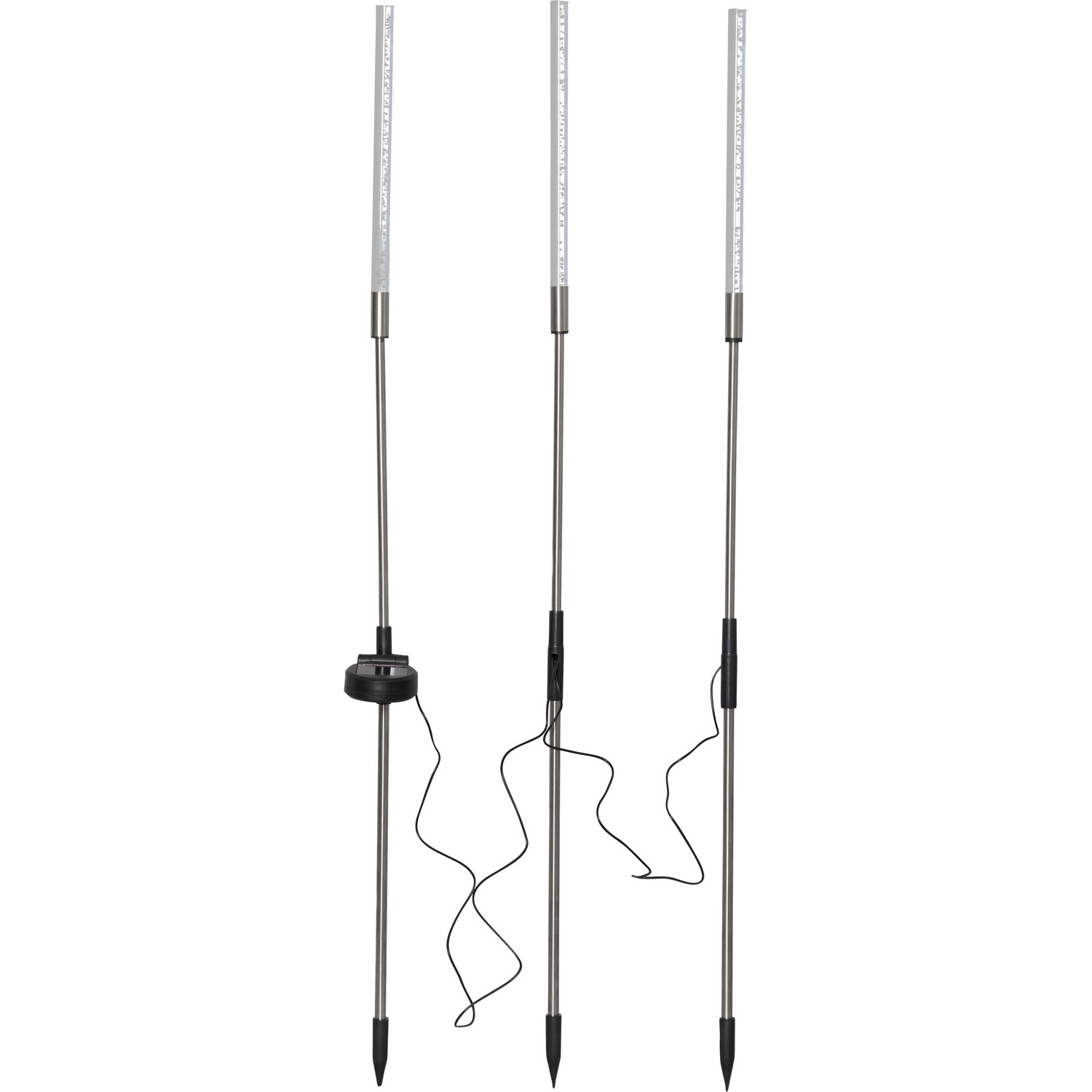 Star Tradings vackra solcellsdrivna dekoration Bubbly 3-Pin lyser upp i mörkret. Denna solcellsbelysning har 3 pinnar i en höjd av cirka 80 cm och 1 cm i diameter som lyser med ett vackert sken igenom den bubbliga akryltoppen.