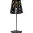 Vår solcellsbelysning Sola är en dekorativ lampa i svart plåt med ett vackert rutnät i skärmen som lyser upp med 5 Lumen i mörkret. Den är lättplacerad på din uteplats eller balkong som bordsbelysning. Placera solcellslampan så att panelen får direkt solljus under dagen för att ladda det medföljande batteriet på bästa sätt.