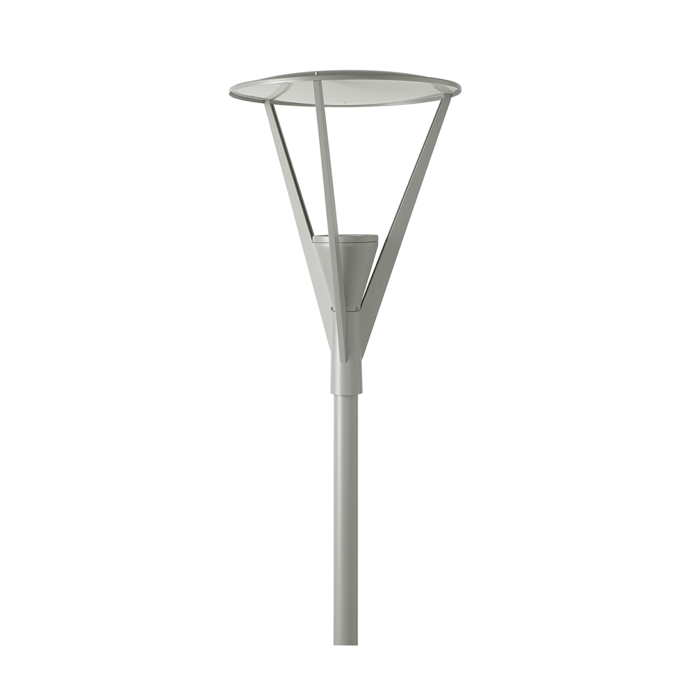 Ett modernt lykthus i gjuten aluminium, passar till stolpar på ca. 3-4 meter och en diameter på 60mm. Bländfritt ljus. Glas i PMMA opalt. Finns i två olika färger. Kan sättas på vägg med ett väggfäste som tillbehör. Finns med både 3000K och 4000K.Kan beställas med Dali. Stolpar och väggfäste finns som tillbehör.