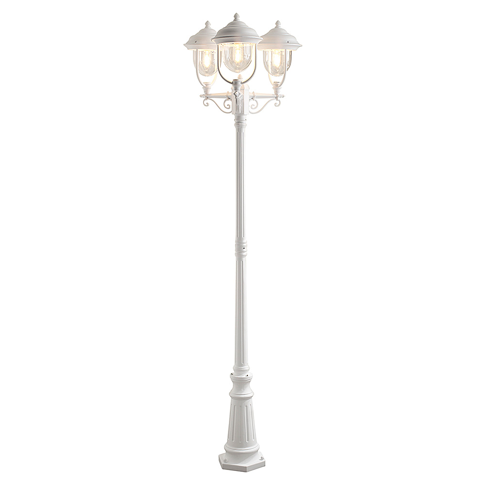 Stolplykta Gnosjö Konstsmide Parma 3-arm E27 med Stolpe är en elegant stolplykta med tre lyktor i klassiskt snitt. Lyktorna har klart akrylglas och är IP 43-klassad. Denna stolplykta är anpassad för utomhusbruk och levereras utan ljuskälla.