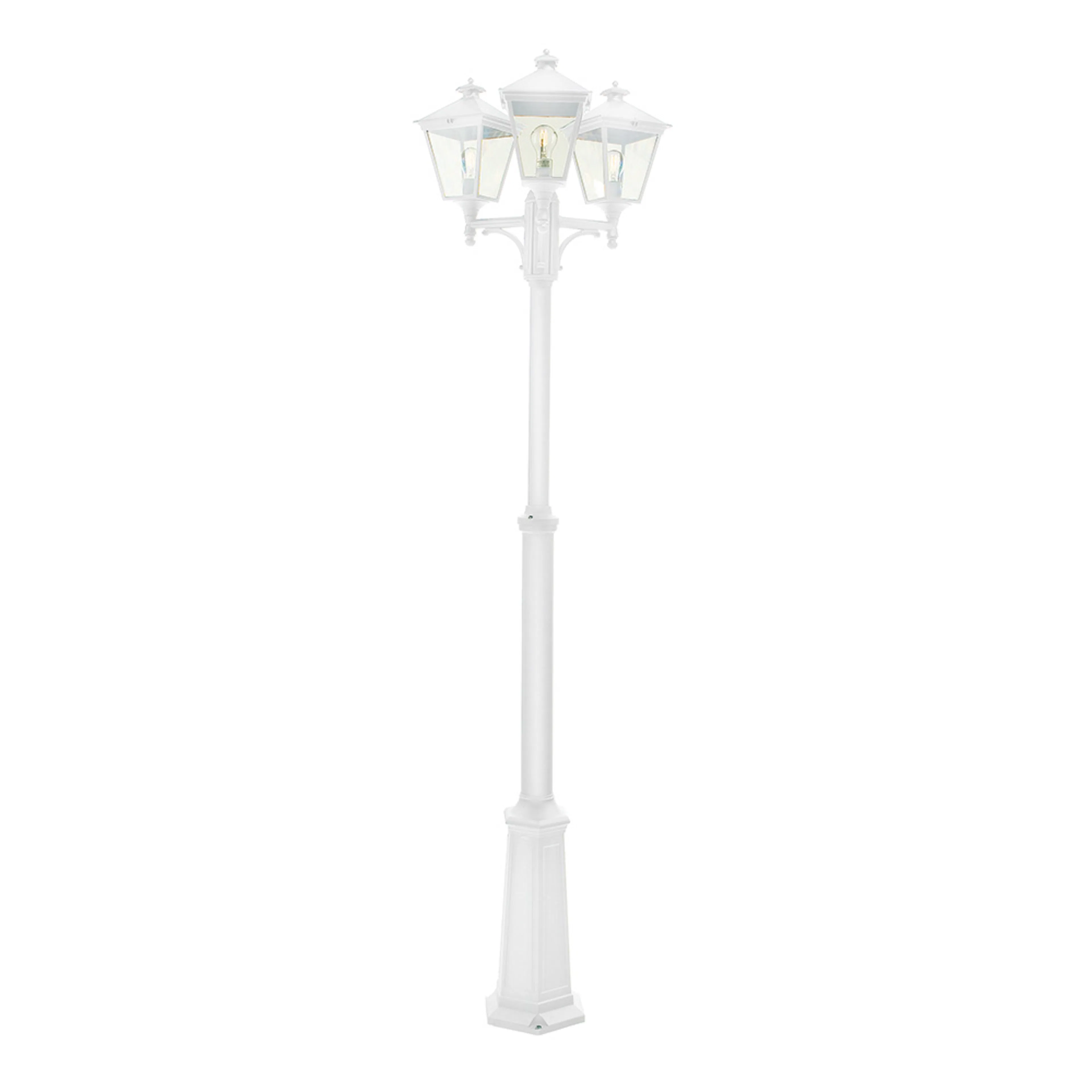 Teleskoperande stolp-serie tillverkad i gjuten aluminium, lackerad. Finns i två färger. Finns med ett, två eller tre lykthus. Två olika storlekar på lykthusen. Glas i klart polykarbonat. Olika fästanordningar finns som tillbehör. Det finns även modeller för vägg och tak i denna serie.