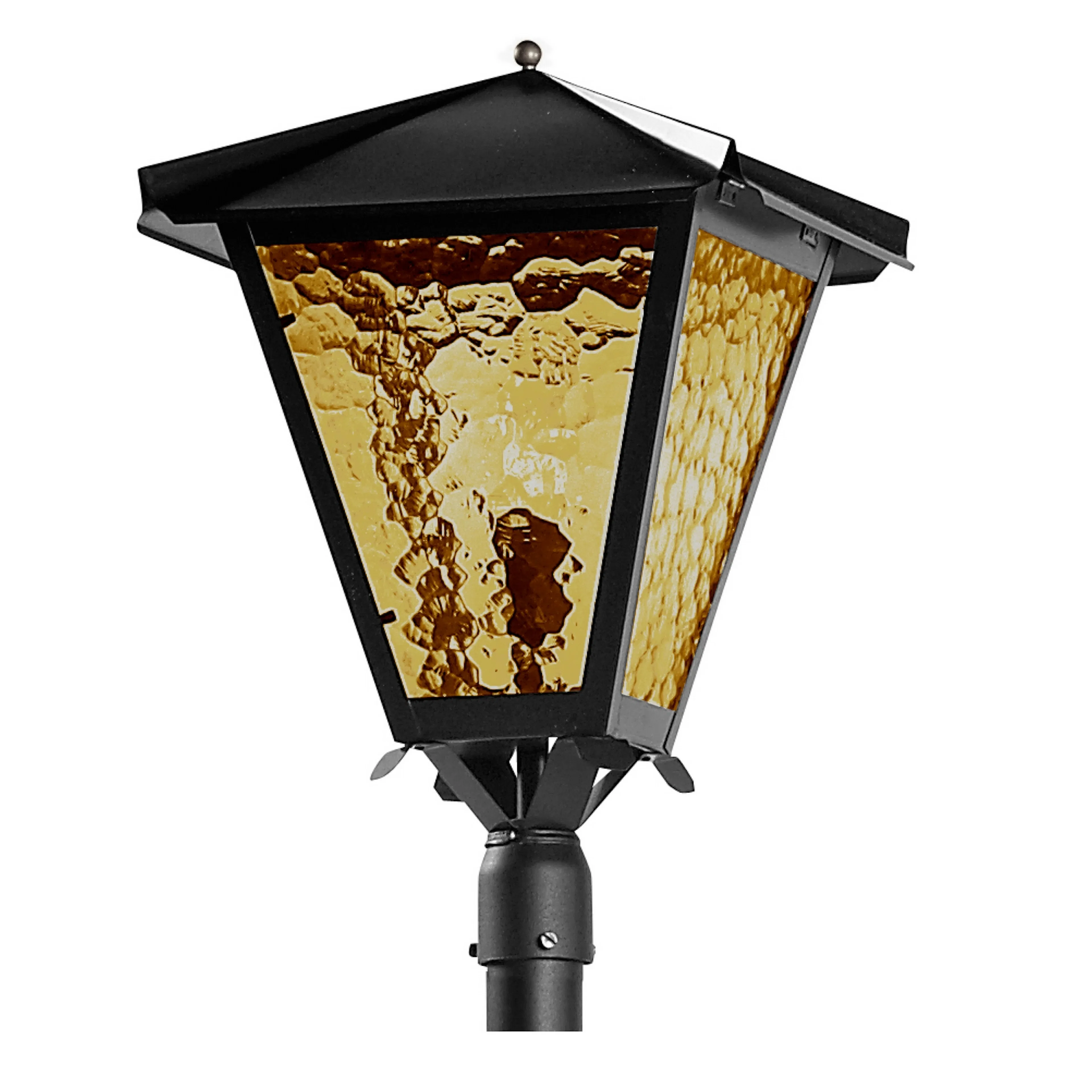 Stolplykta Gustav från Westal är en elegant stolparmatur i klassisk stil. Lampan har en stomme i pulverlackerad metall och hamrat katedralglas samt en E27-sockel. Denna armatur passar i så väl privat som offentlig miljö och är anpassad för en stolptopp (48 mm), med kabelavlastning och sanbbkopplingsplint (3x2x2,5 kv).