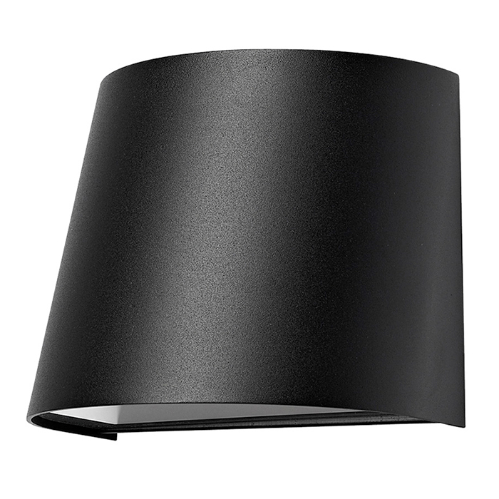 Väggarmatur med avbländat nedljus. Anodiserad och pulverlackerad stomme i aluminium, bländskydd i PET-G. Armaturen har en E27-lamphållare som är godkänd för max 15W. Bakstycket har två in- och utgångar samt snabbkopplingsplint. Avsedd för utomhusbruk (IP44) och passar för bruk både i privat och offentlig miljö.