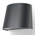 Väggarmatur med avbländat nedljus. Anodiserad och pulverlackerad stomme i aluminium, bländskydd i PET-G. Armaturen är bestyckad med LED-enheten Philips Fortimo Disk 800lm. Färgtemperaturen är varmvit (3000K) med en ljusbild som lyser ned. Bakstycket har två in- och utgångar samt snabbkopplingsplint. Avsedd för utomhusbruk (IP44) och passar för bruk både i privat och offentlig miljö.