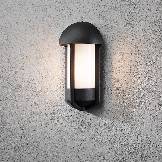 Vägglampa Gnosjö Konstsmide Tyr E27 är en elegant vägglampa för utomhusbruk. Den har opalfärgat akrylglas och är IP 23-klassad. Vägglampan levereras utan ljuskälla.